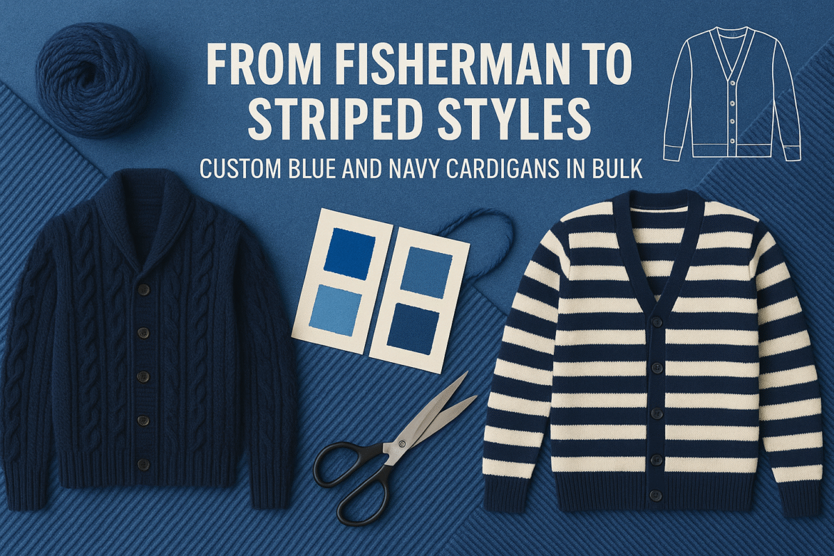 From Fisherman to Striped Styles – Custom Blue and Navy Cardigans in Bulk