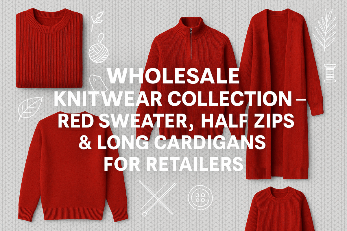 Wholesale Knitwear Collection – Red Sweaters, Half Zips & Long Cardigans for Retailers
