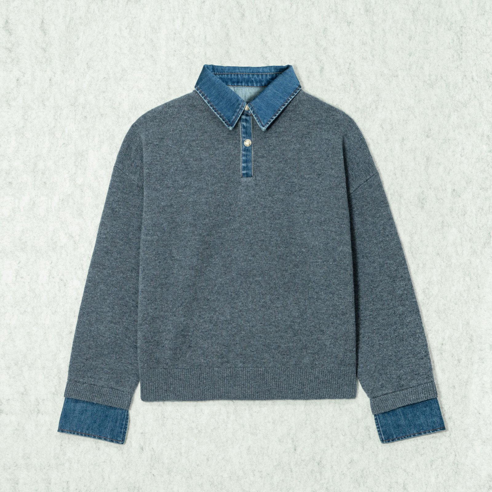 Knit Top Wool denim-textured Collar Long Sleeve Casual Style