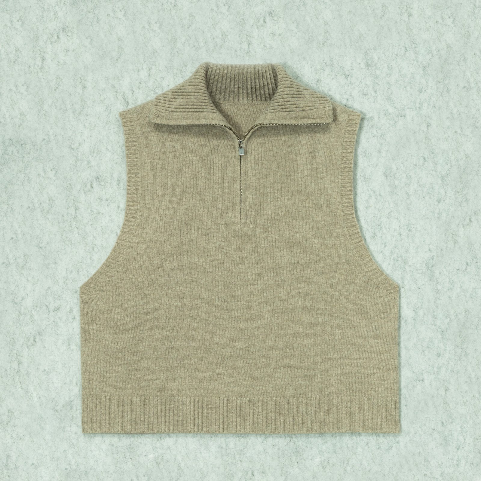 Vest Wool Polo Neck Sleeveless Quarter zip ribbed trim Style