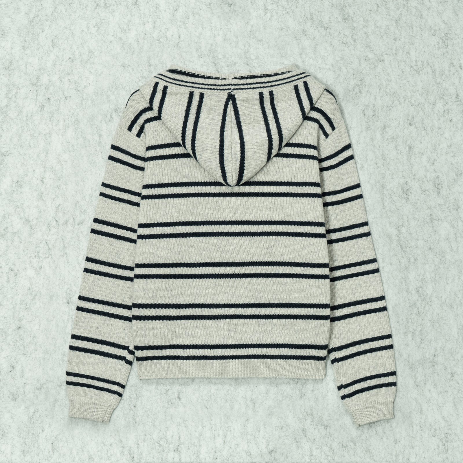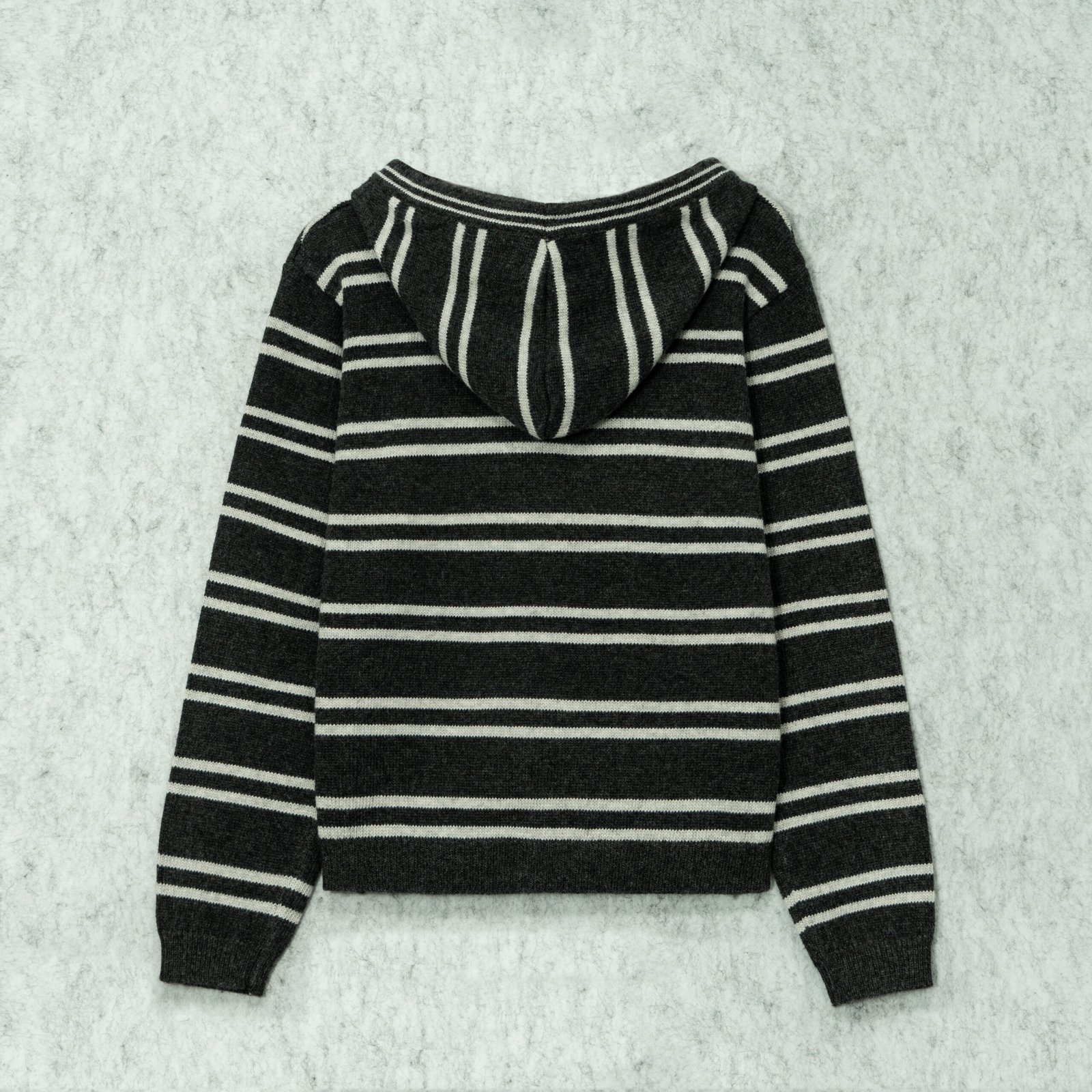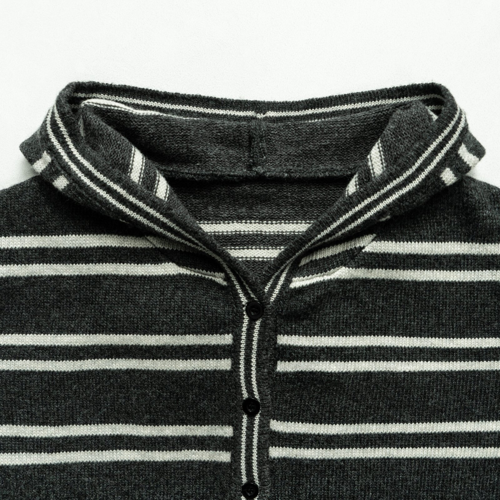 Cardigan Wool Hooded Long Sleeve Striped knit button Style