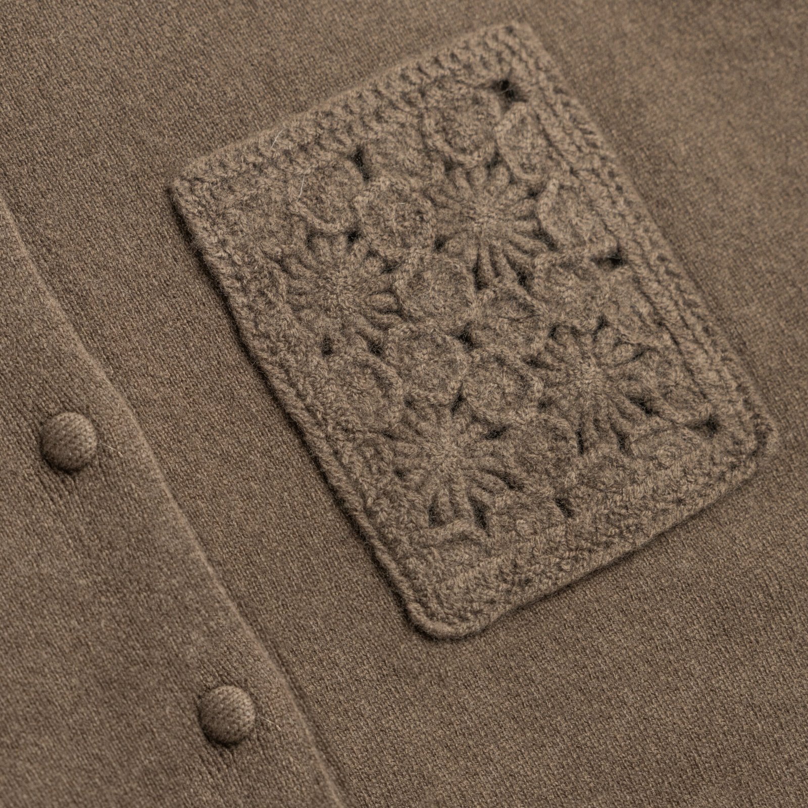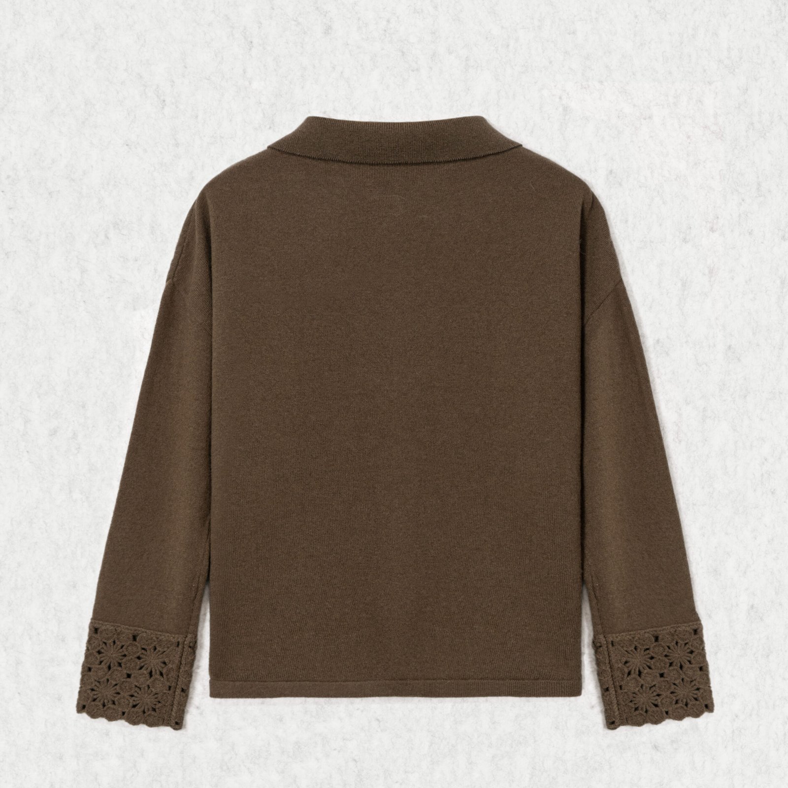 Cardigan Wool Polo Collar Long Sleeve Crochet patch pocket Style