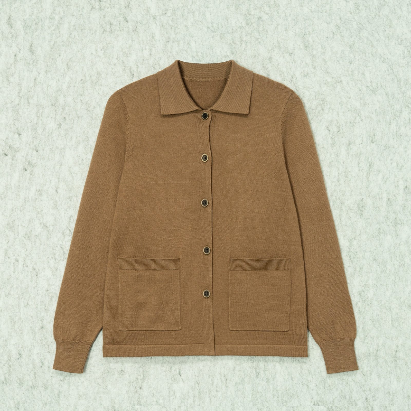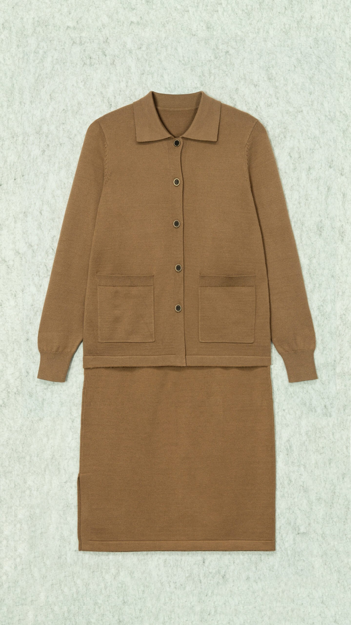 Cardigan Wool Polo Neck Long Sleeve Matching skirt set patch pocket Style