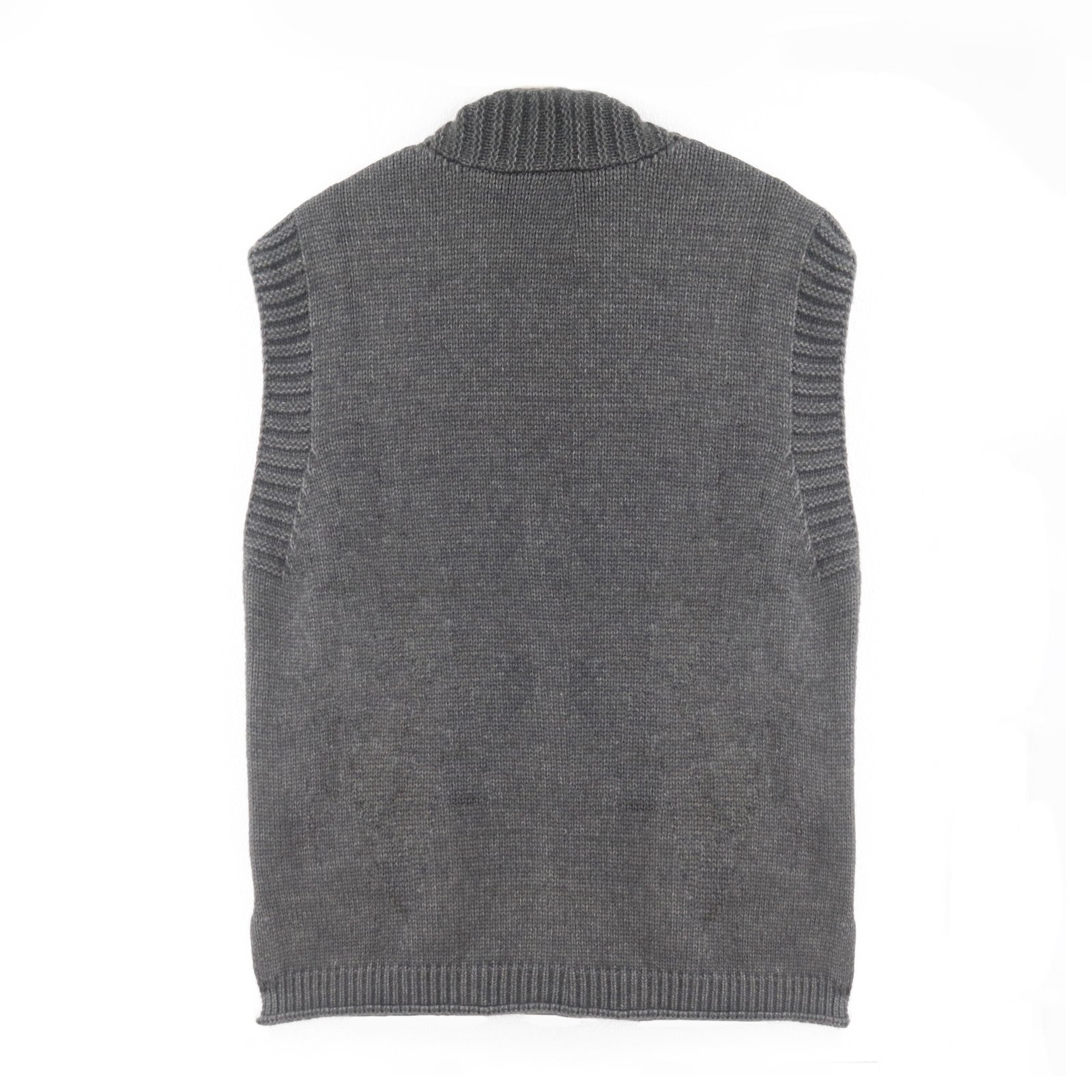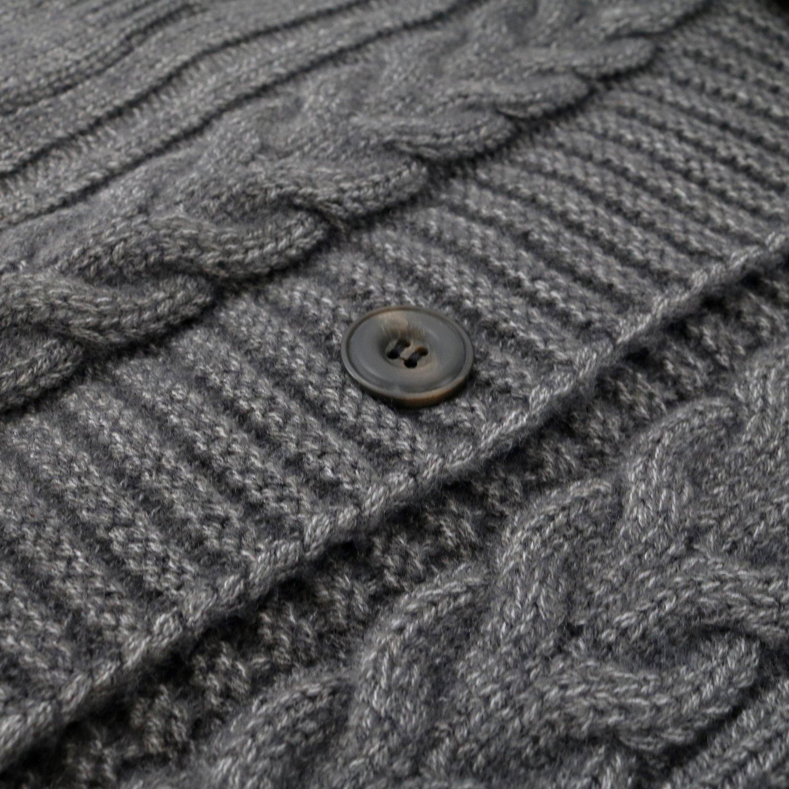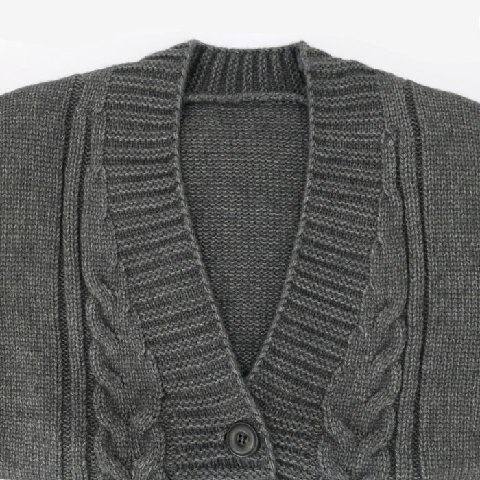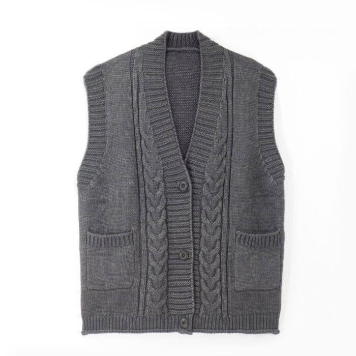 Chunky Grey Cable Knit Vest – V-Neck Button-Up Waistcoat