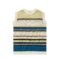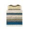 Featuring an open-knit construction, this sleeveless pullover showcases horizontal stripes in shades of cream, mustard yellow, brown, olive, and vivid blue. The breathable texture makes it ideal for transitional seasons or for styling over shirts and tees. Ribbed trims at the neck, armholes, and hem offer added structure.