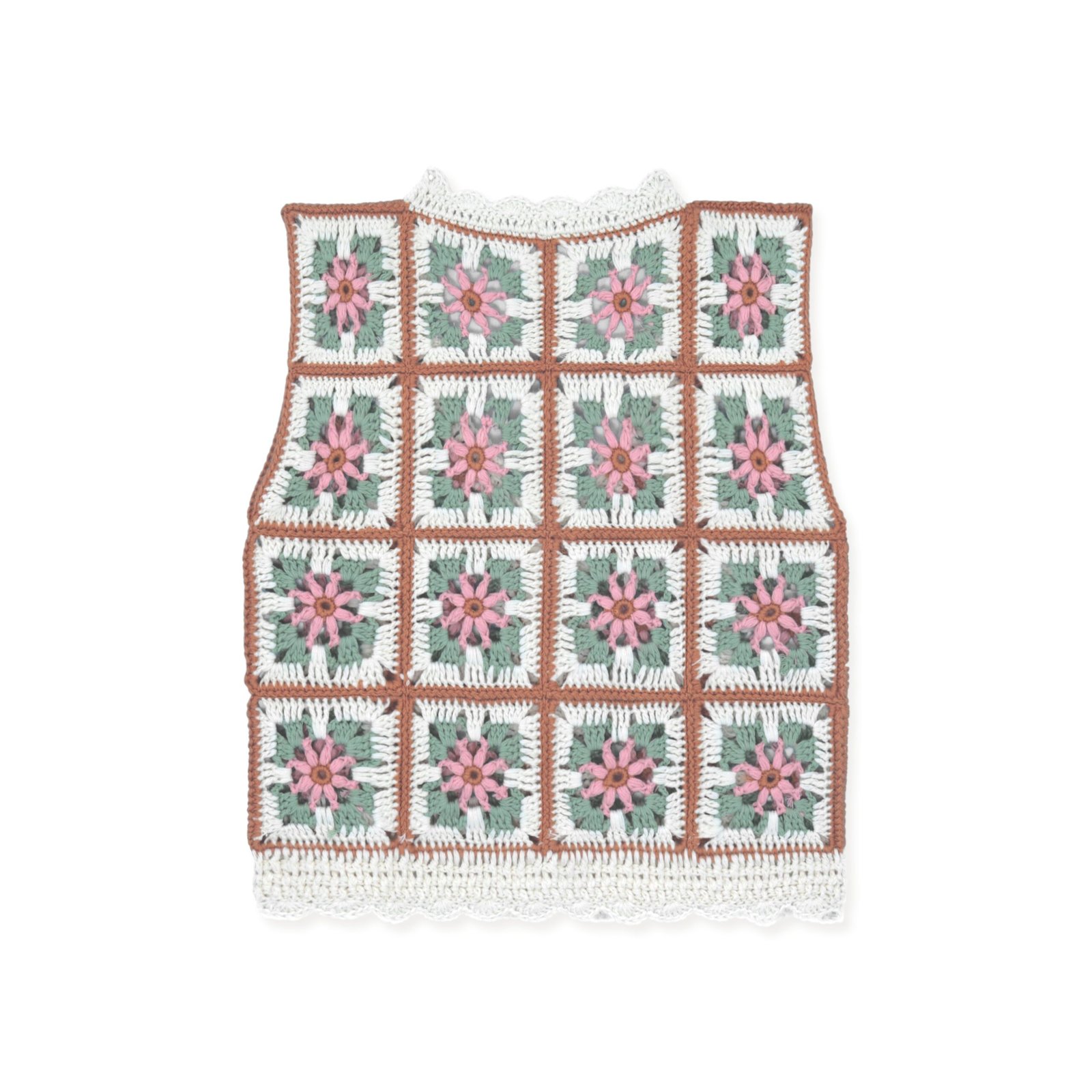 Floral Granny Square Crochet Vest – Button Front Sleeveless Cardigan