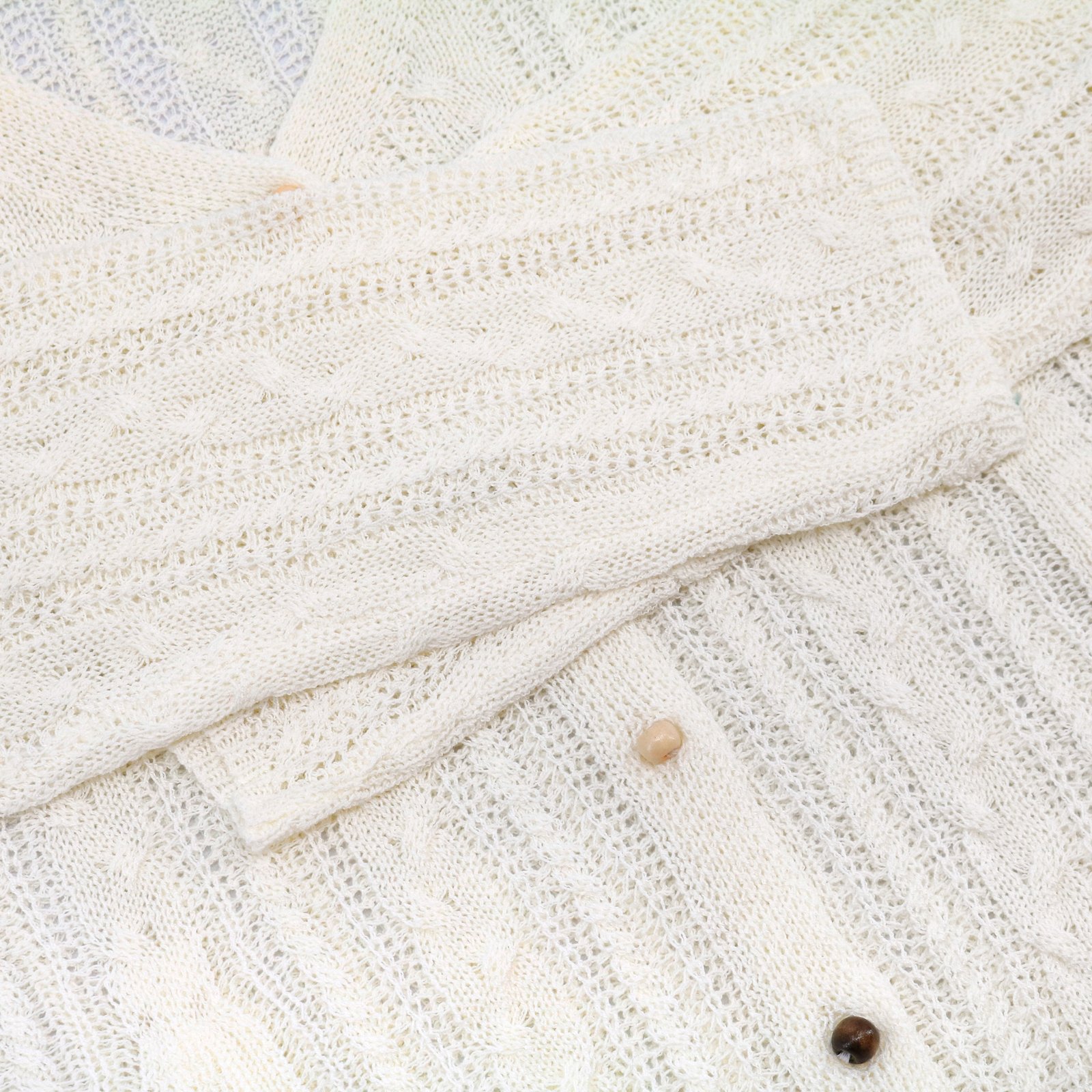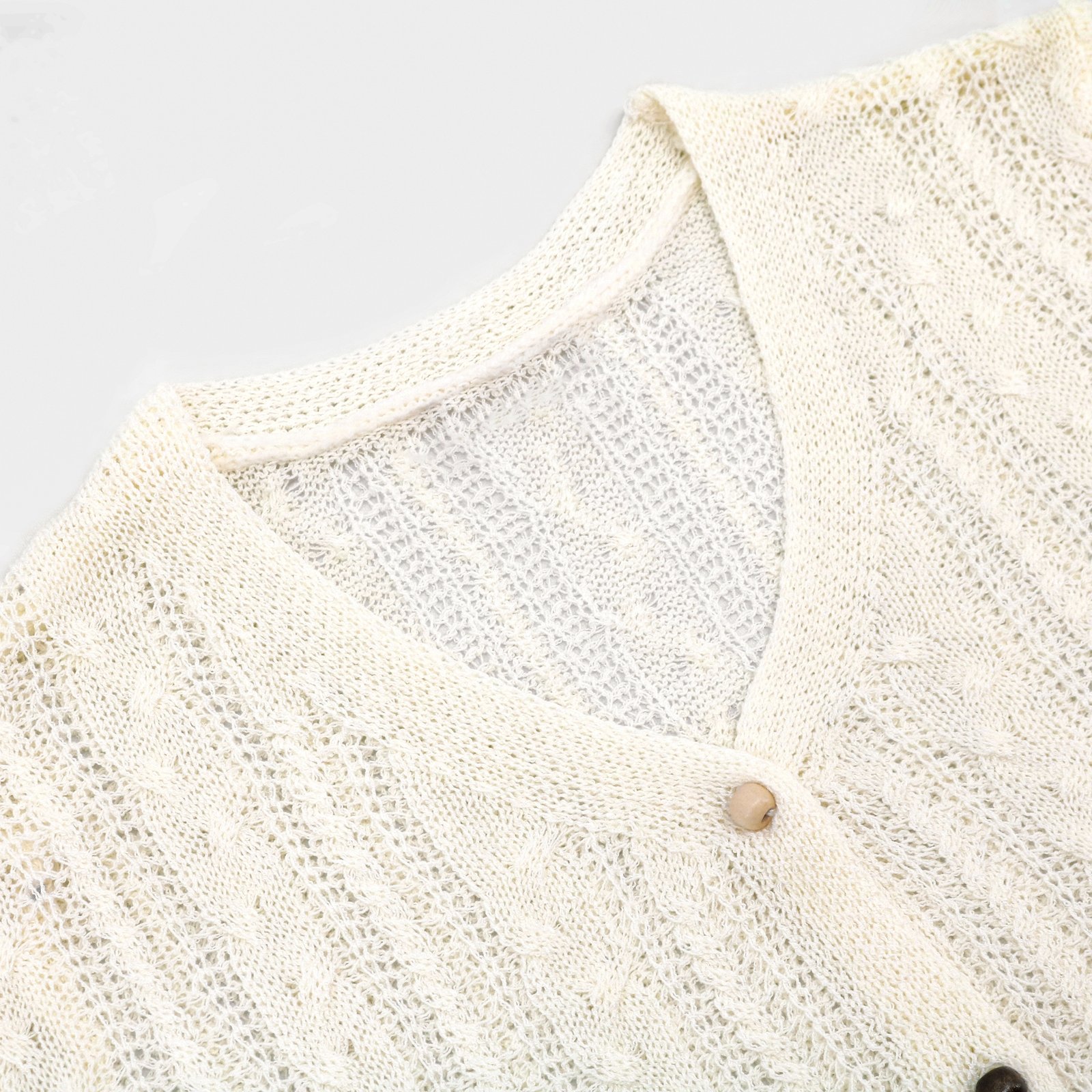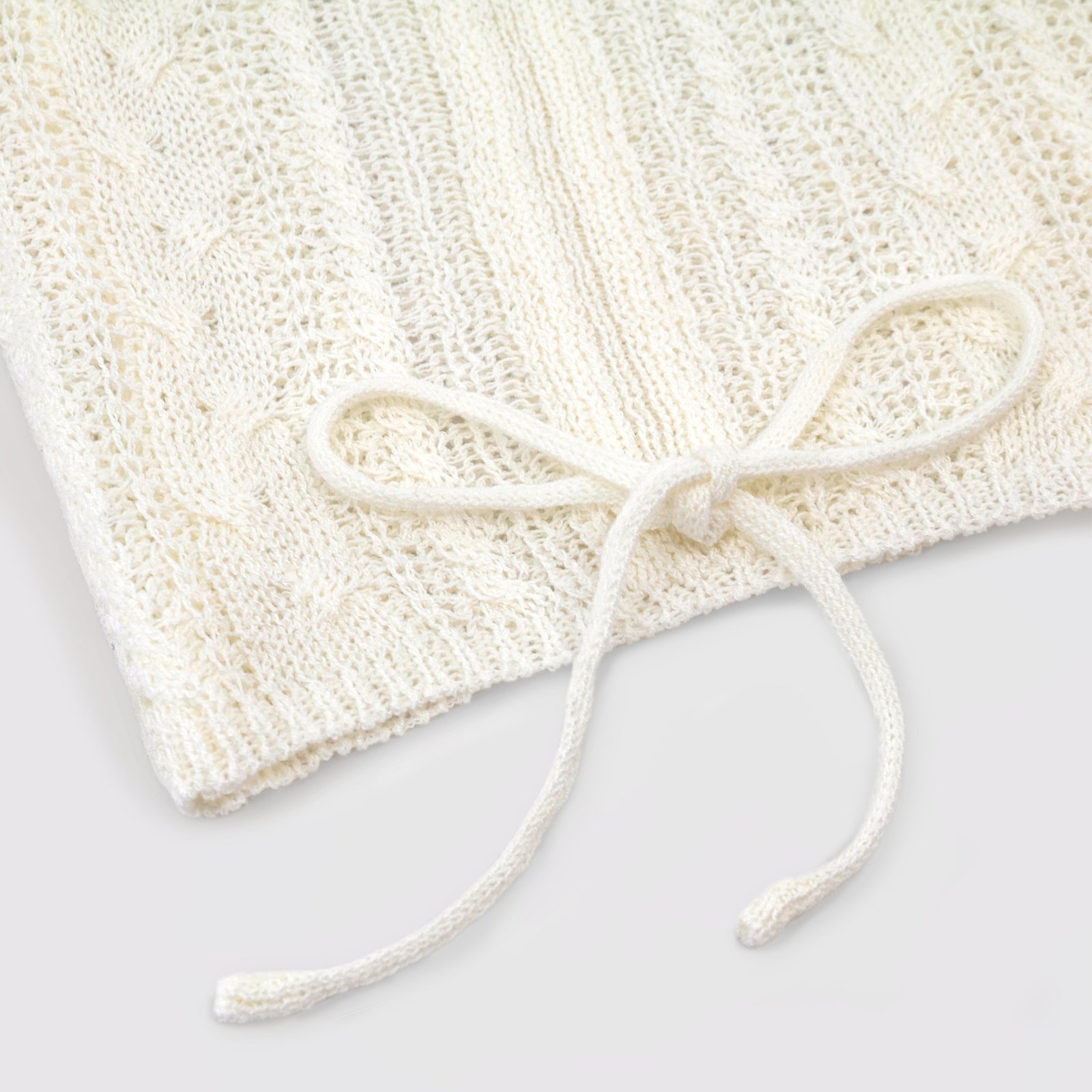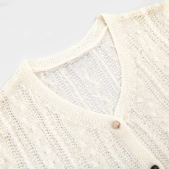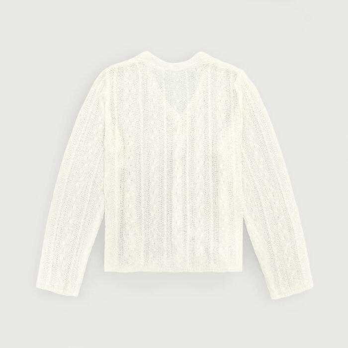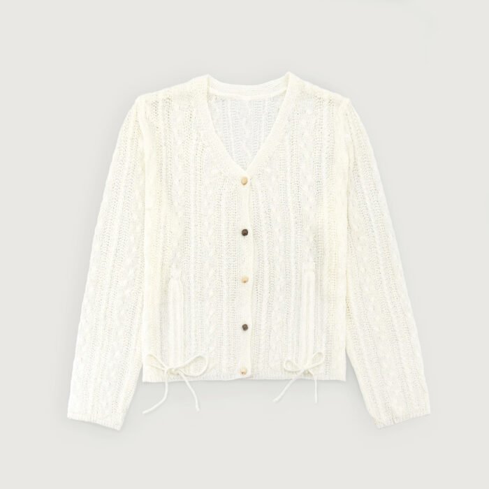 Ivory Open Knit Cardigan – Drawstring V-Neck Women’s Top