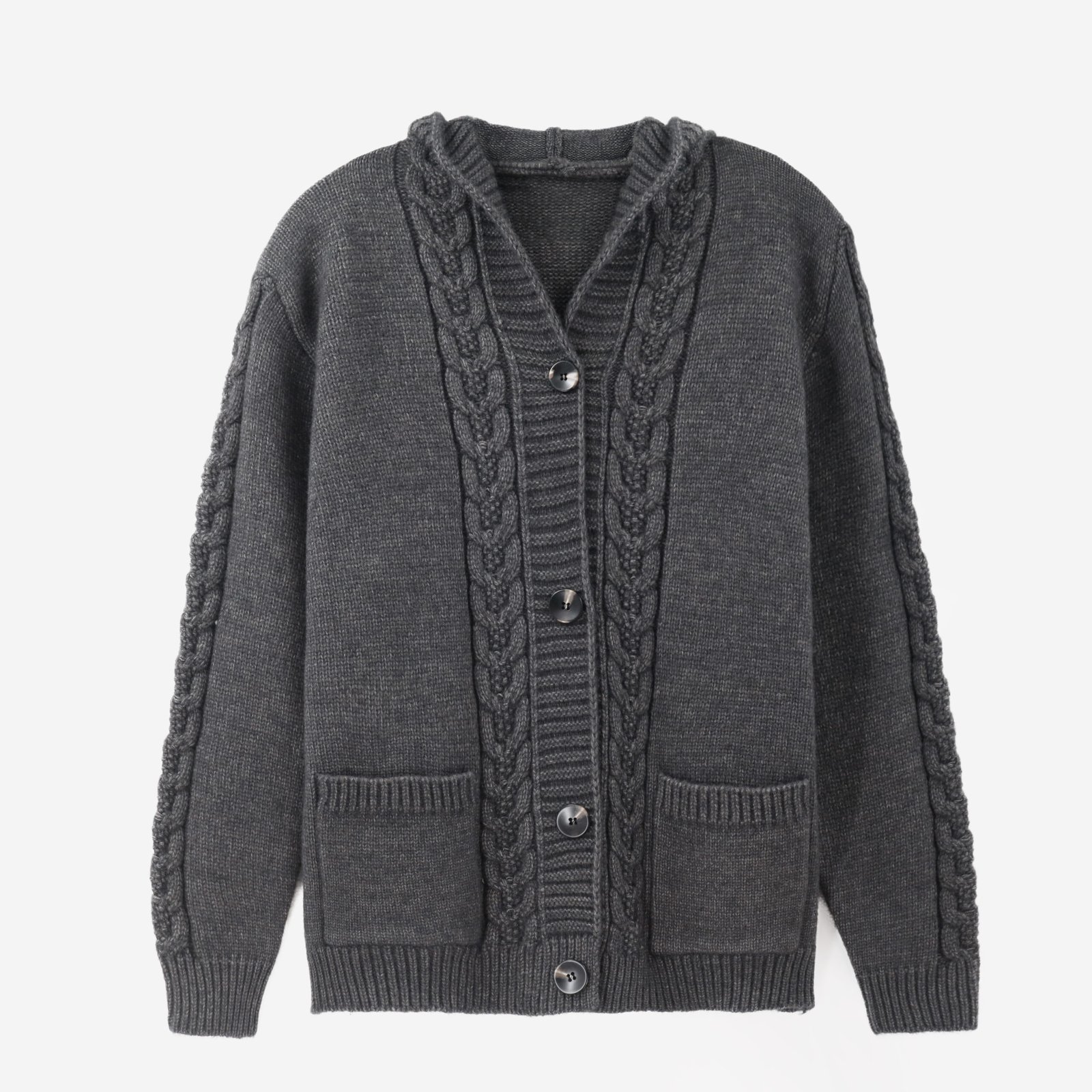 Knit Cardigan Wool V-Neck Long Sleeve Cable Knit Vintage Style