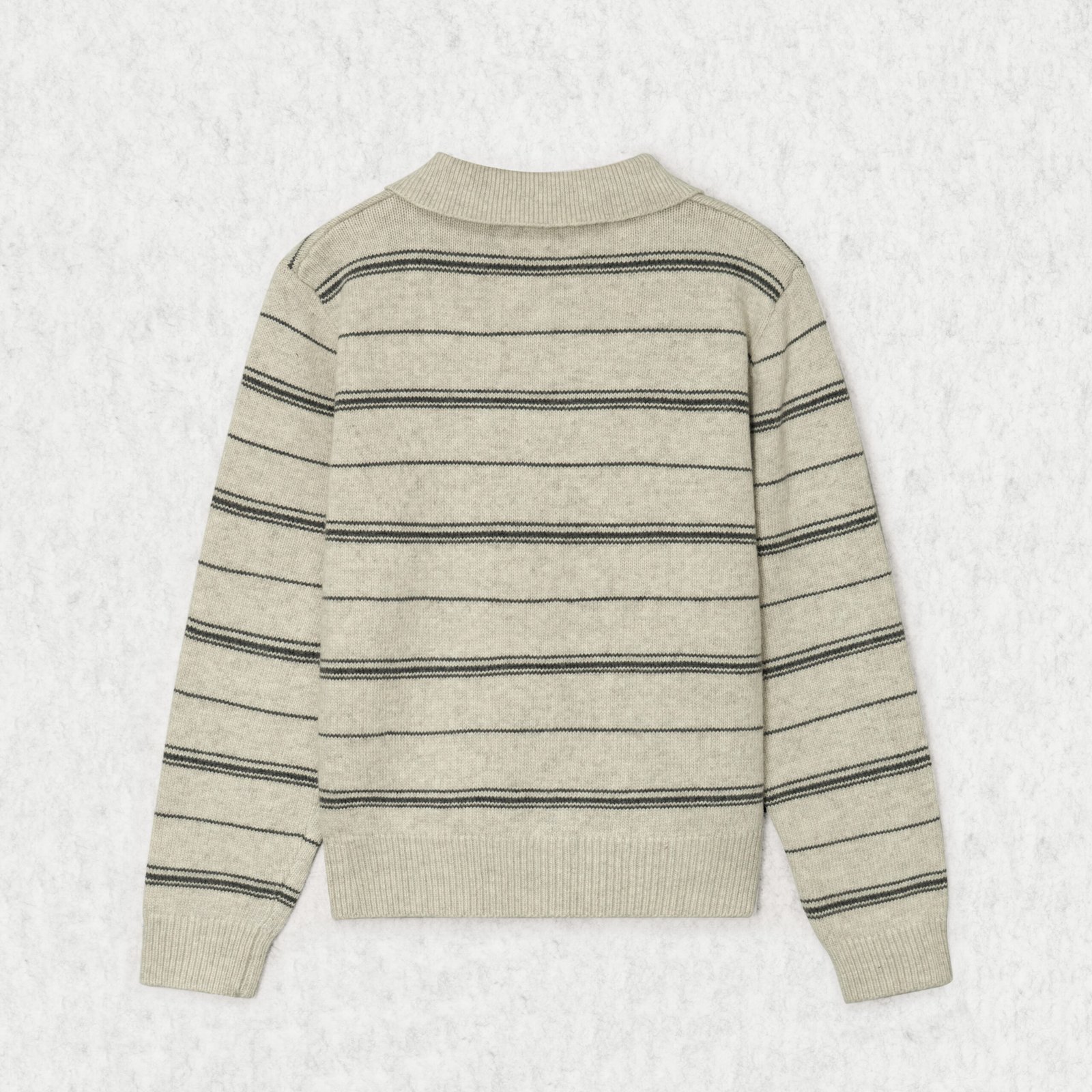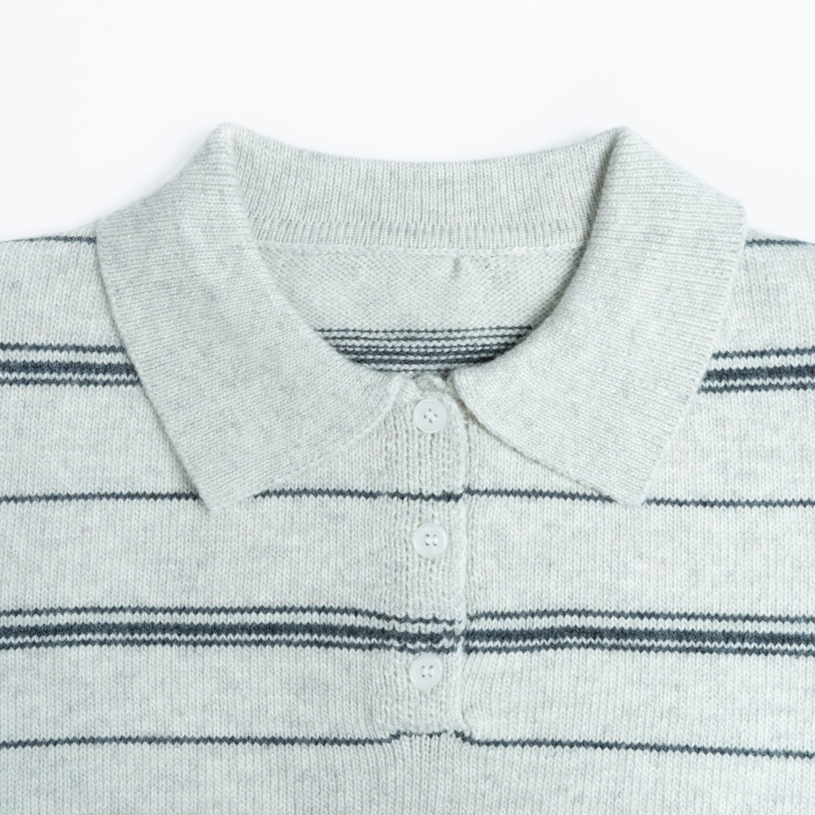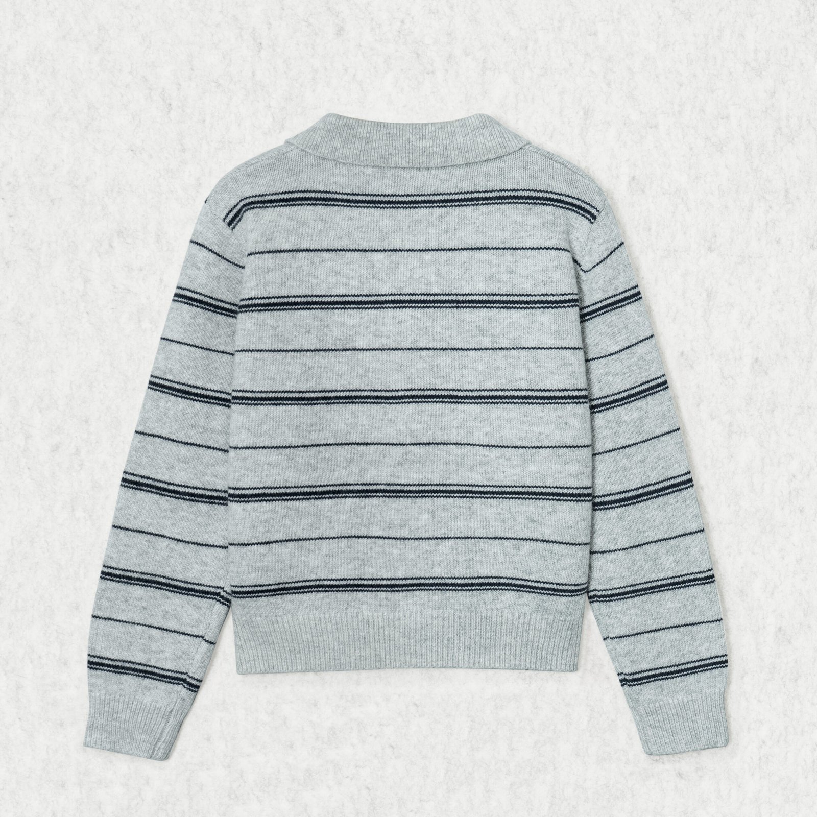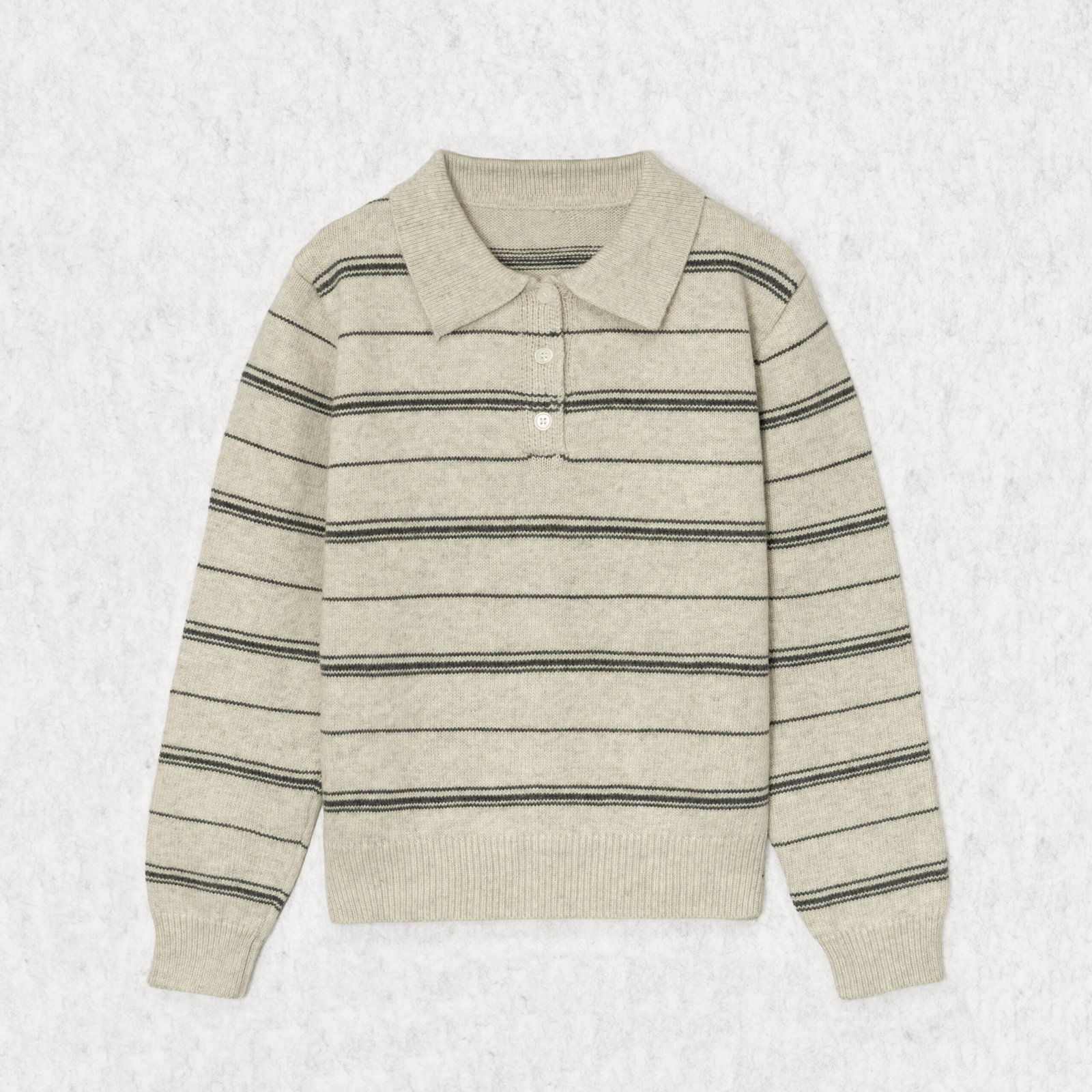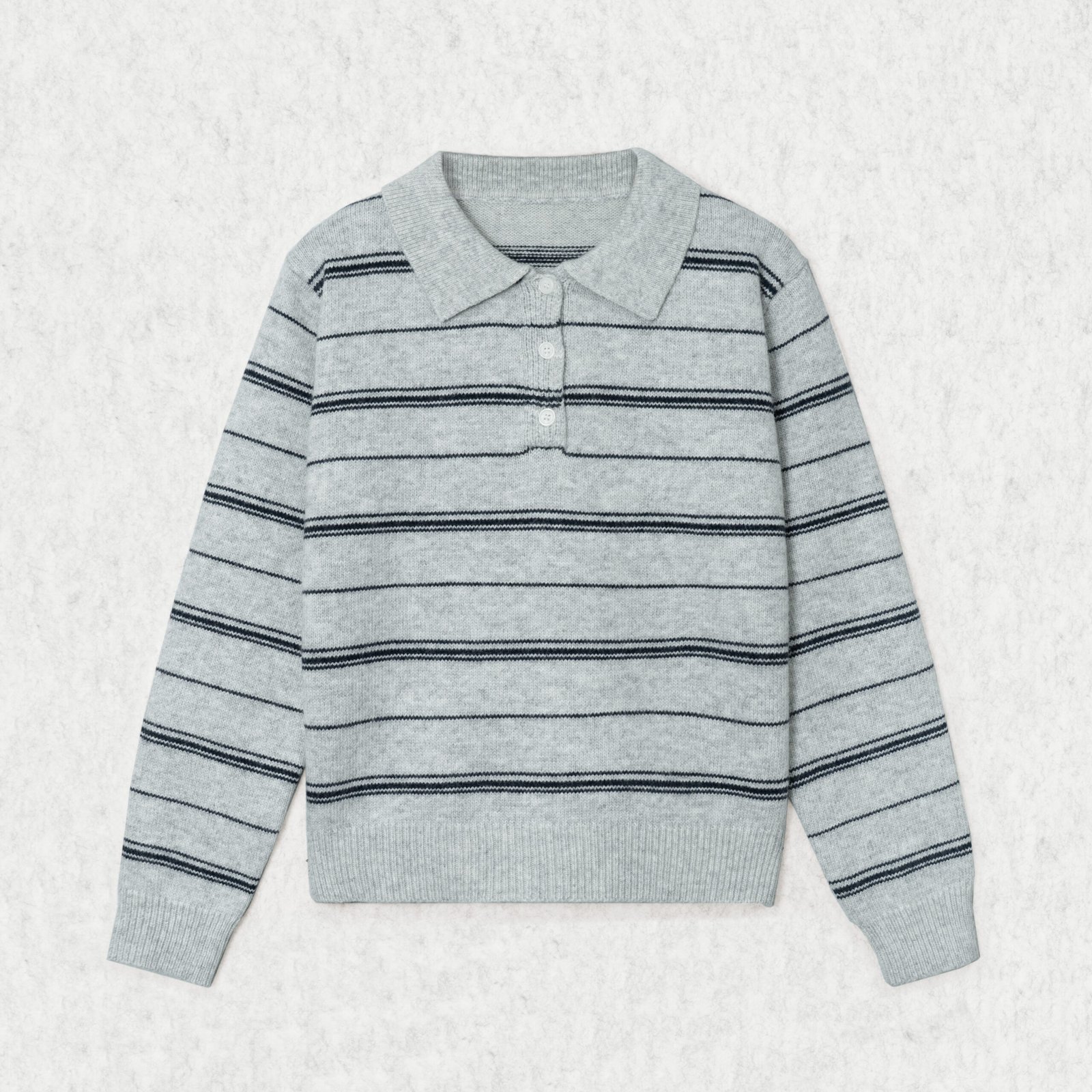 Knit Sweater Wool Polo Collar Long Sleeve Horizontal stripe button Style