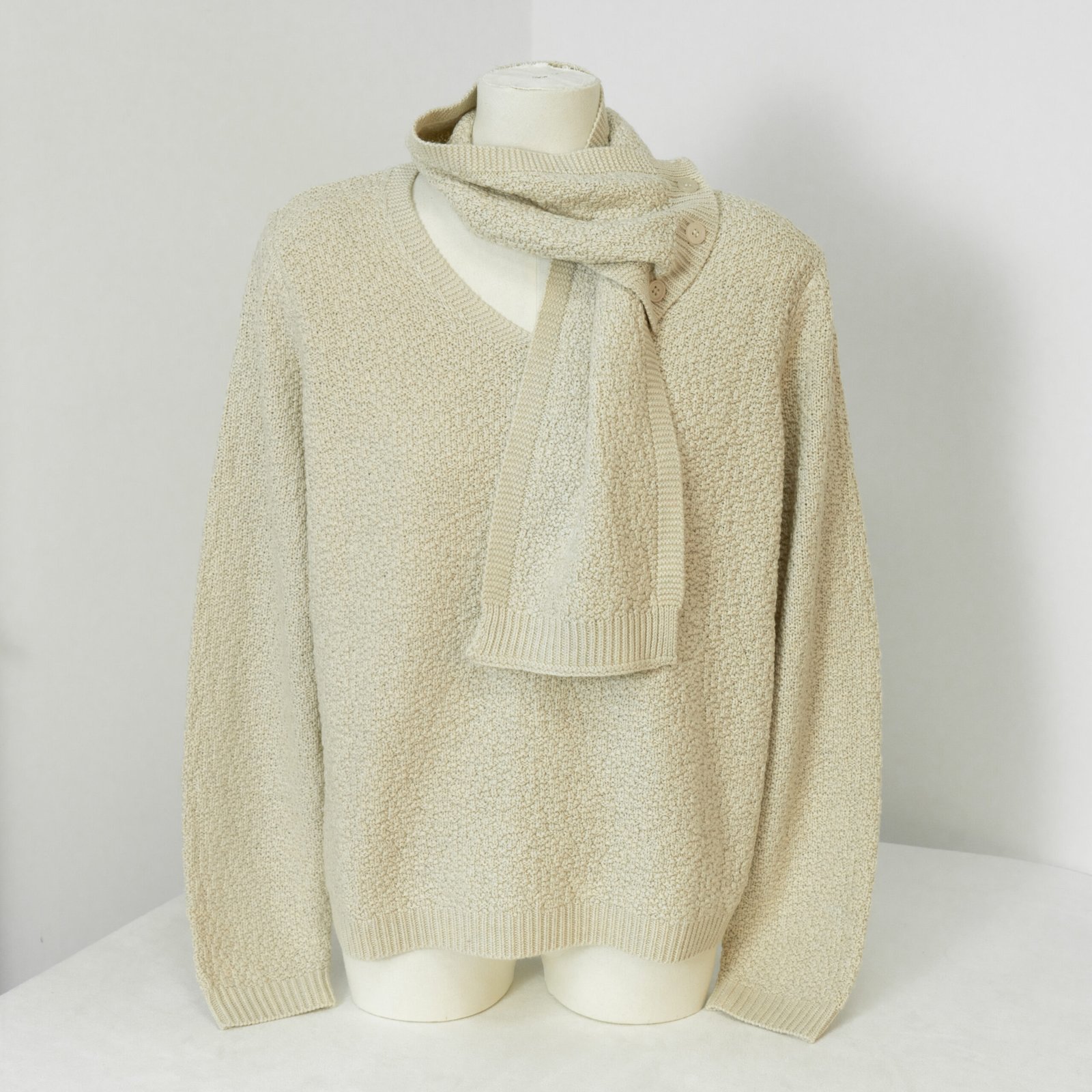 Knit Sweater Wool V Neck Long Sleeve Matching scarf textured Style