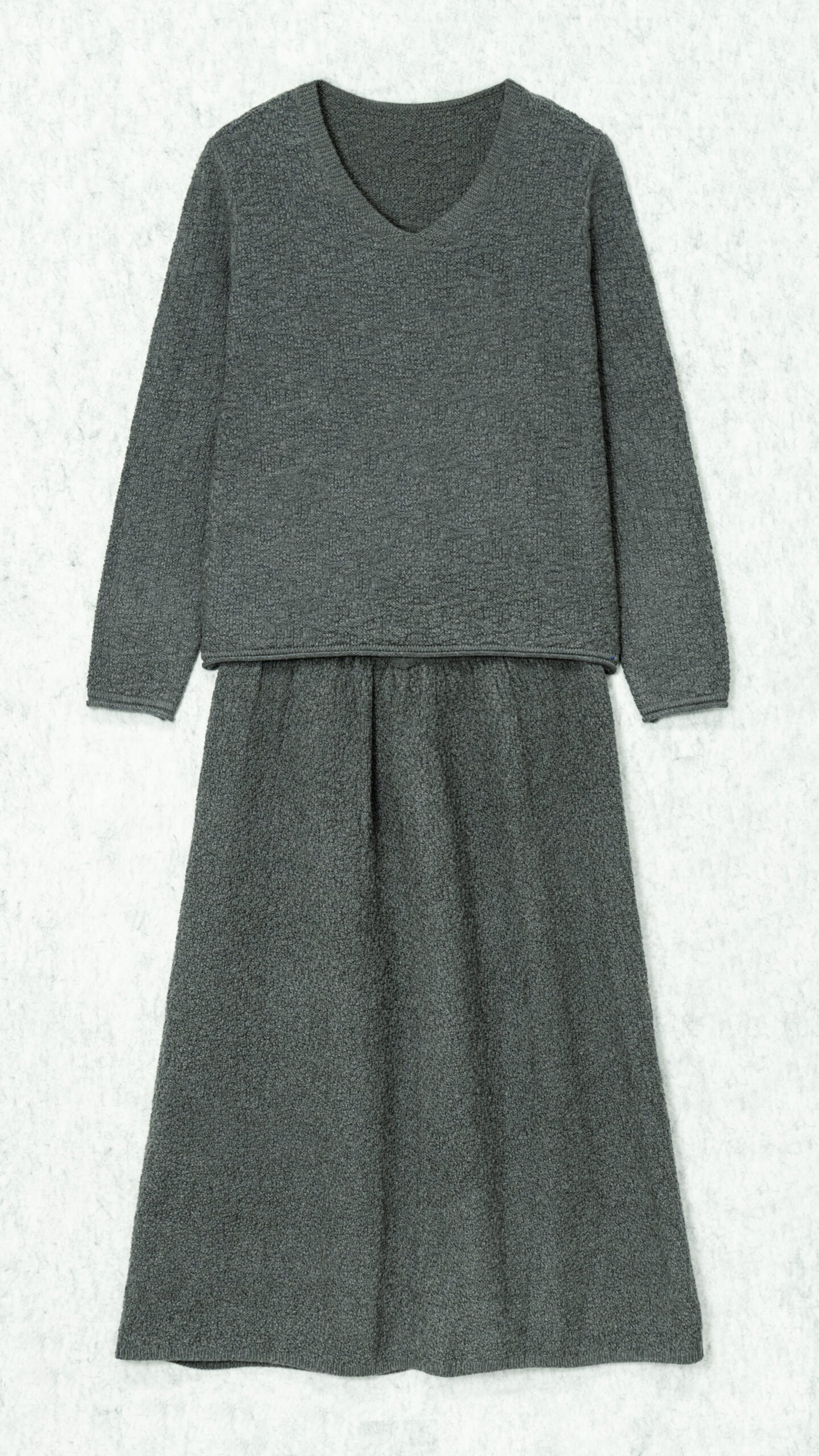 Knit Sweater Wool V-Neck Long Sleeve Matching skirt set minimalist Style