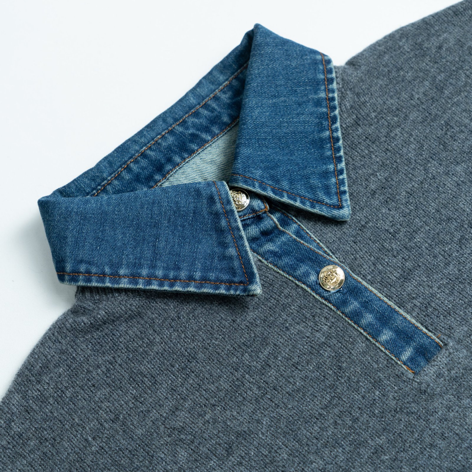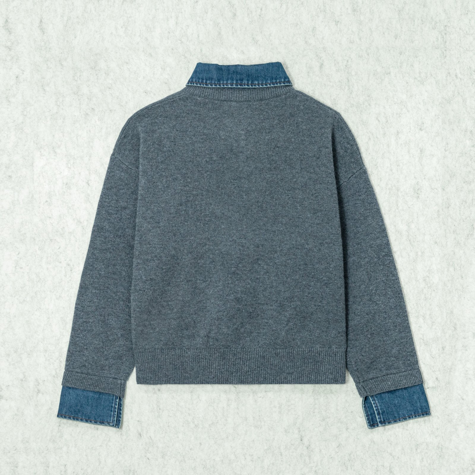Knit Top Wool denim-textured Collar Long Sleeve Casual Style