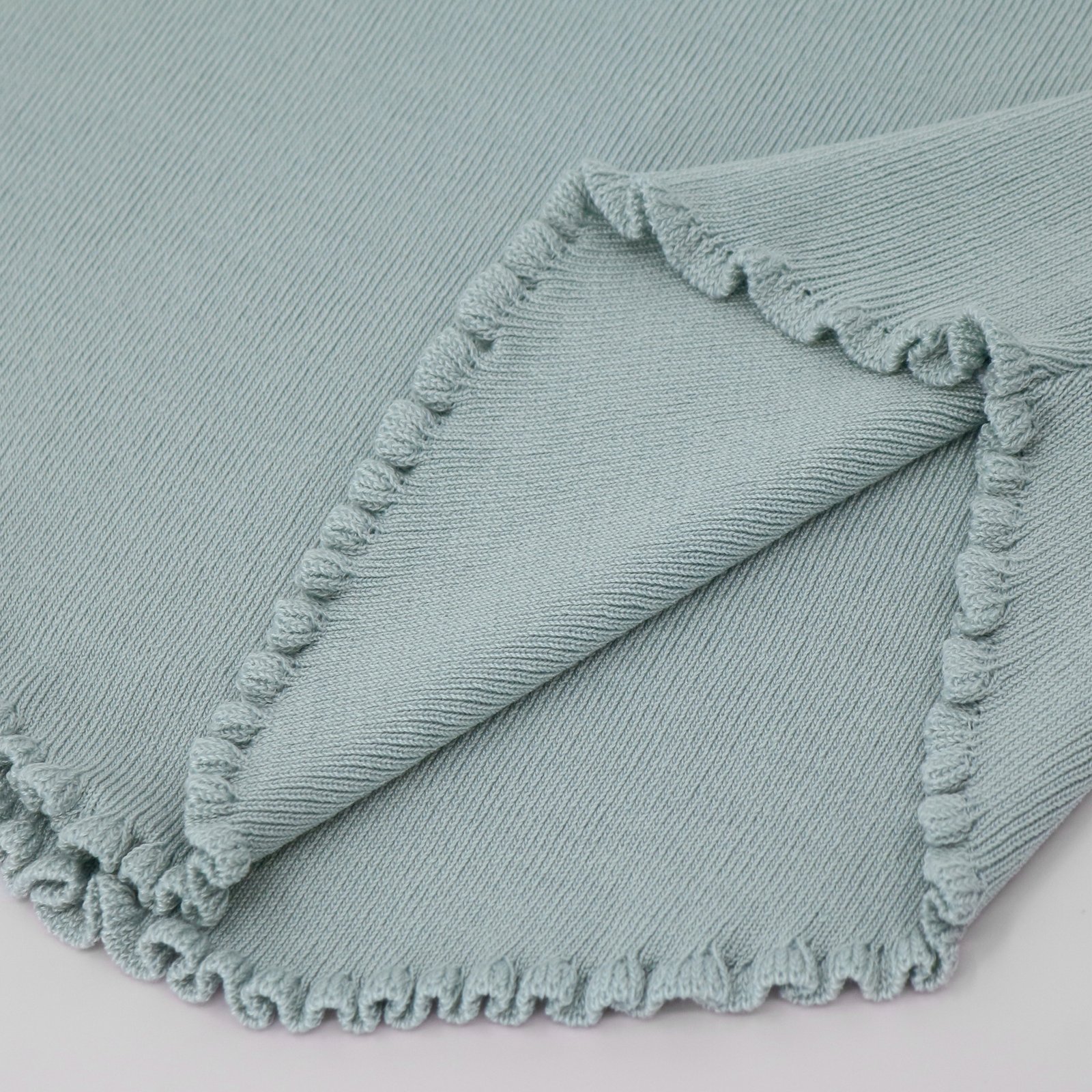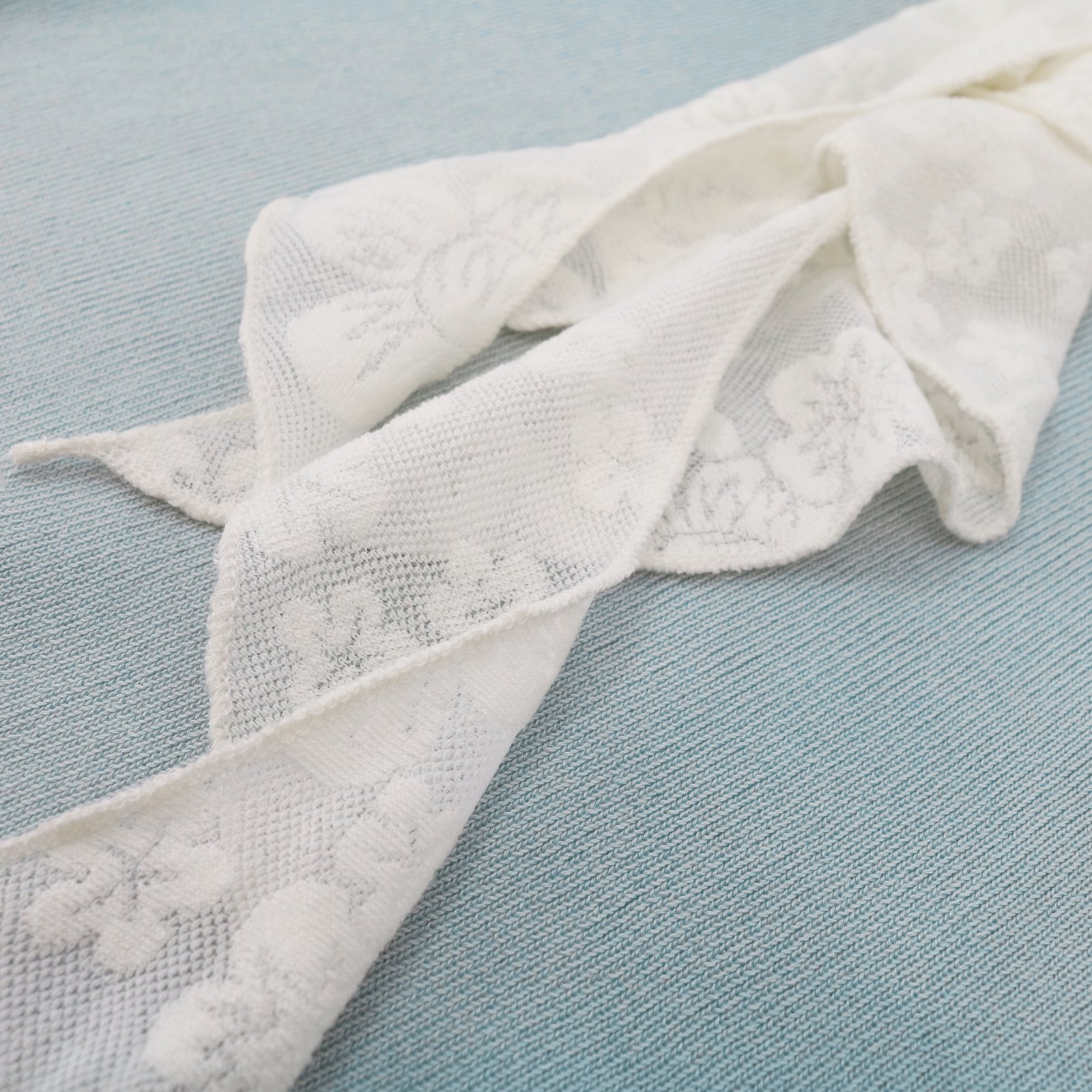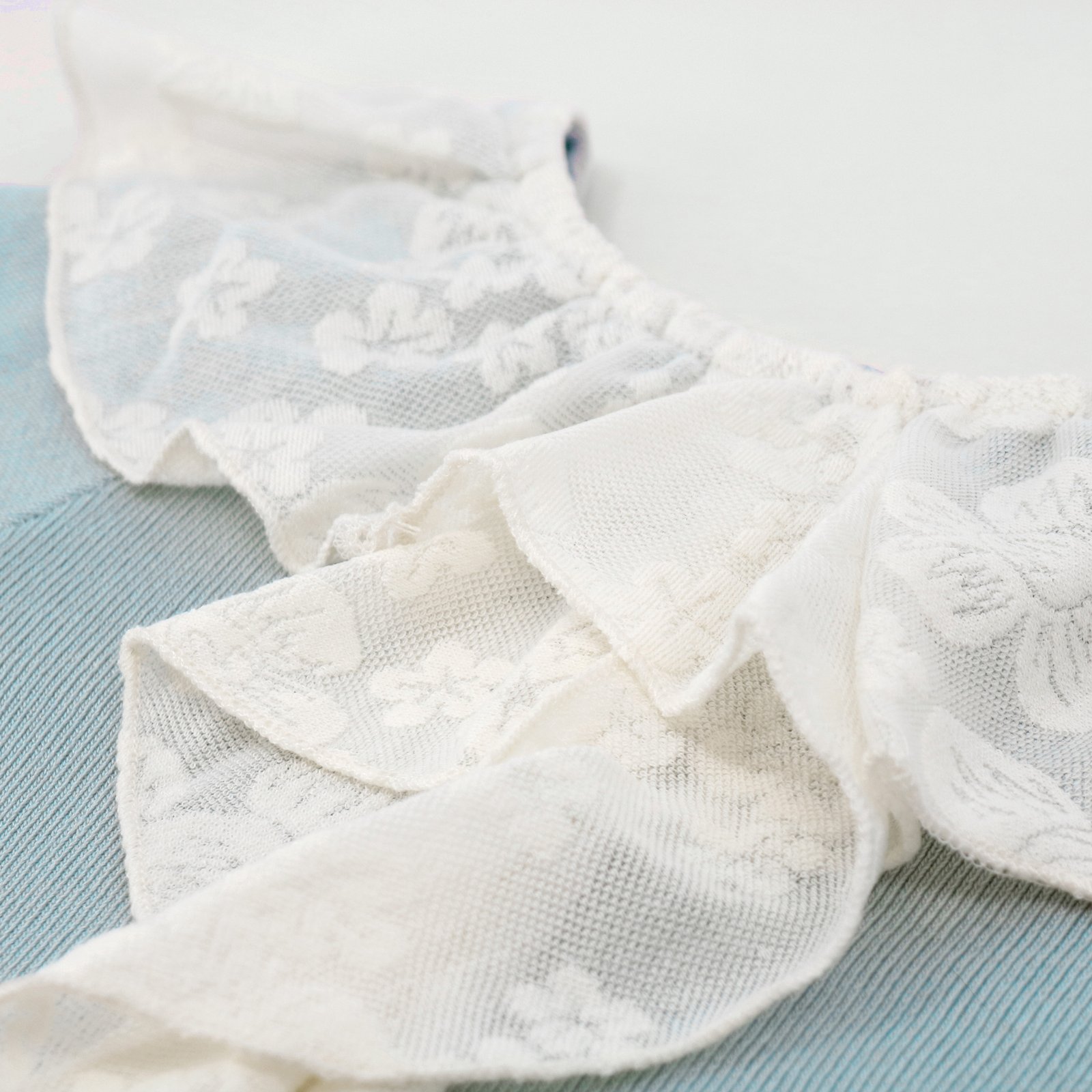 Lace Ruffle Off-Shoulder Top – Sky Blue Knit Blouse