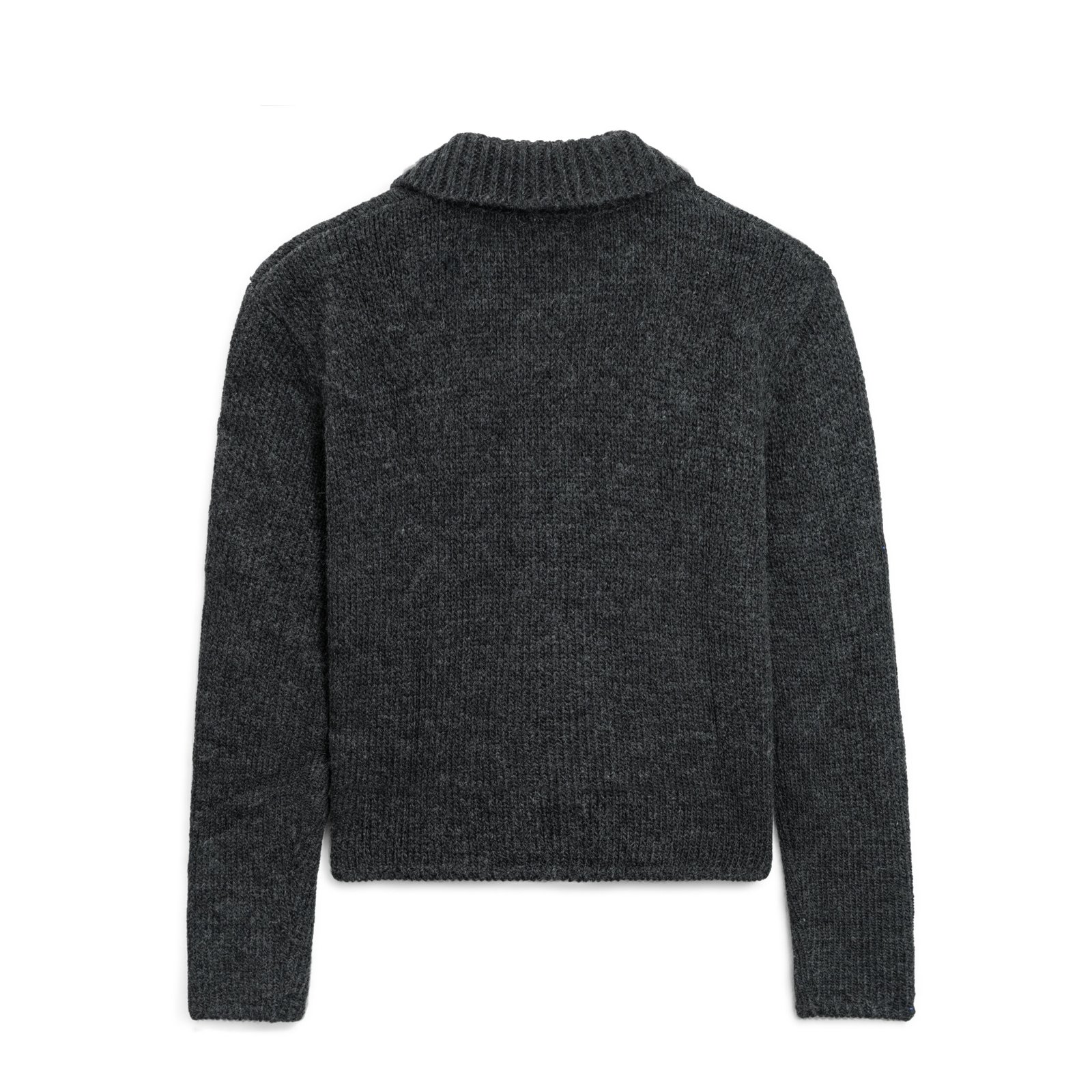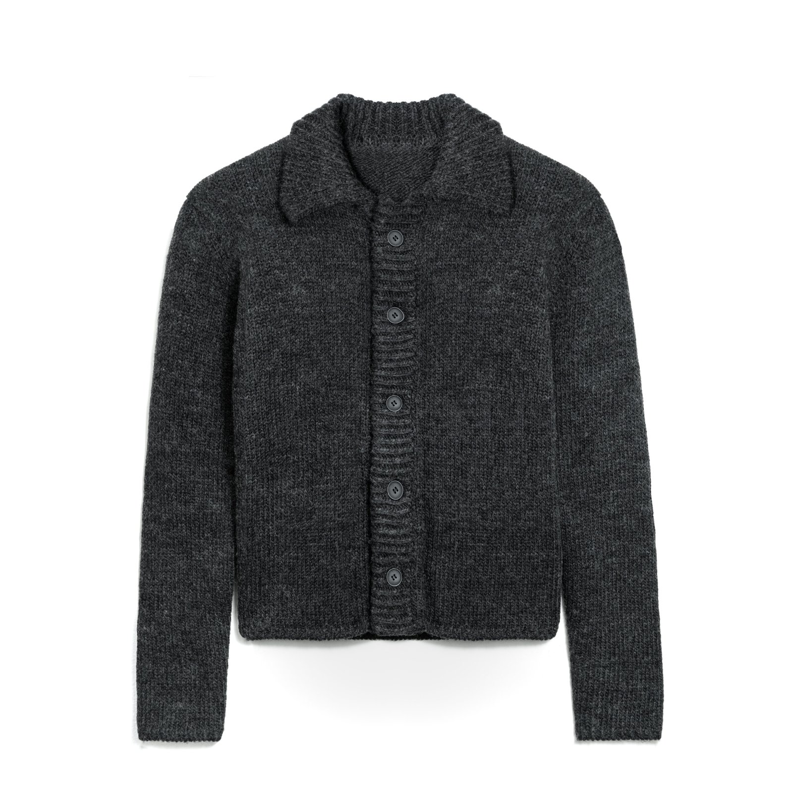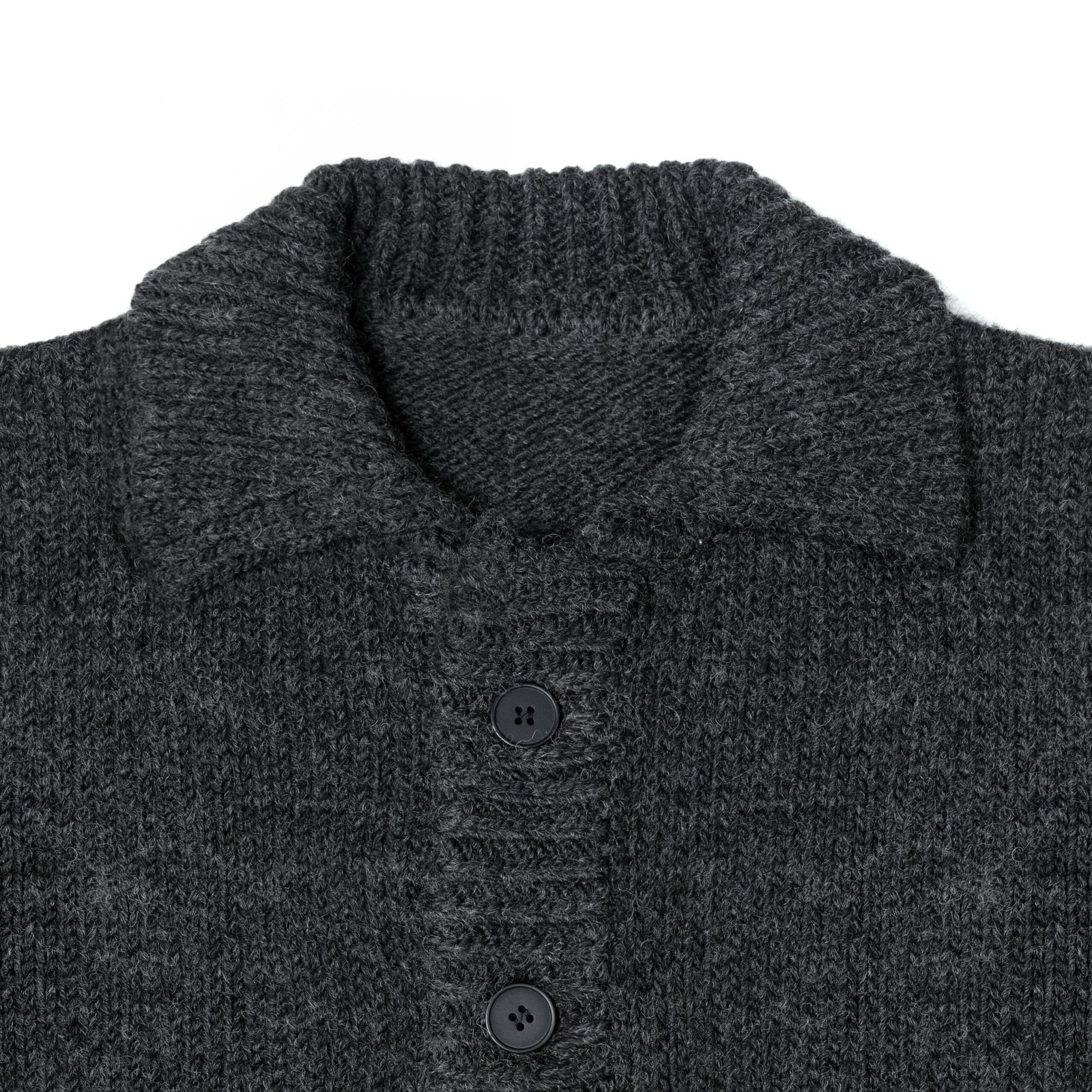 Men’s Mohair Blend Cardigan with Collar – Fuzzy Dark Grey