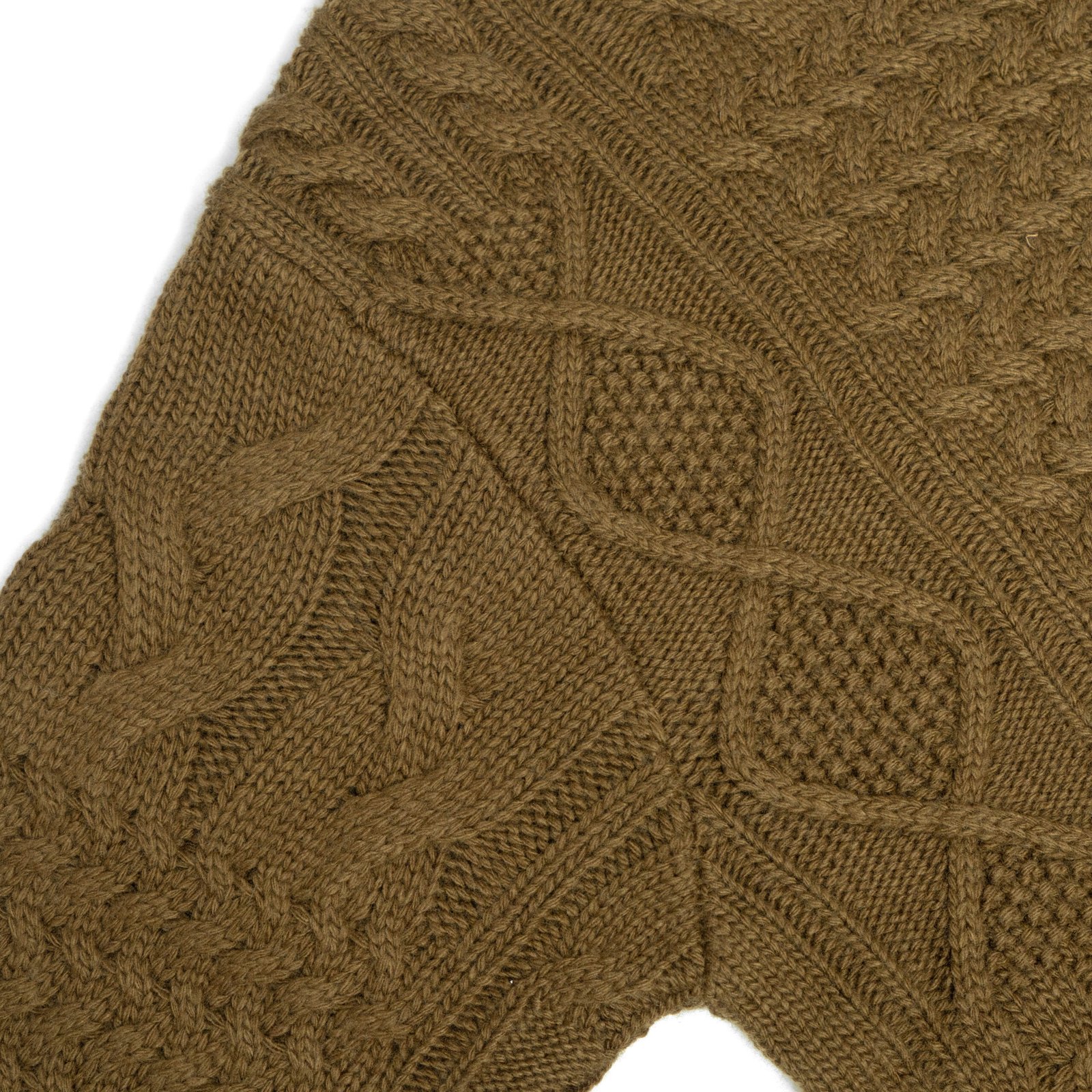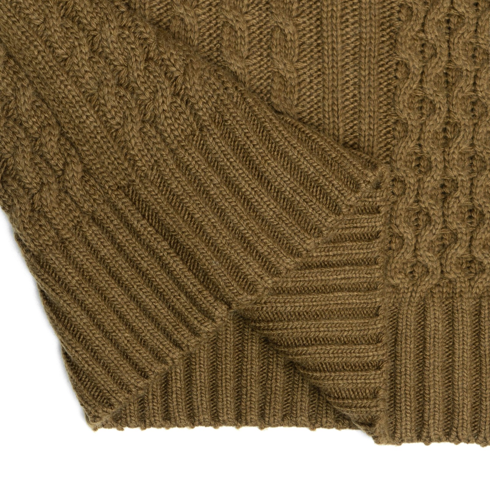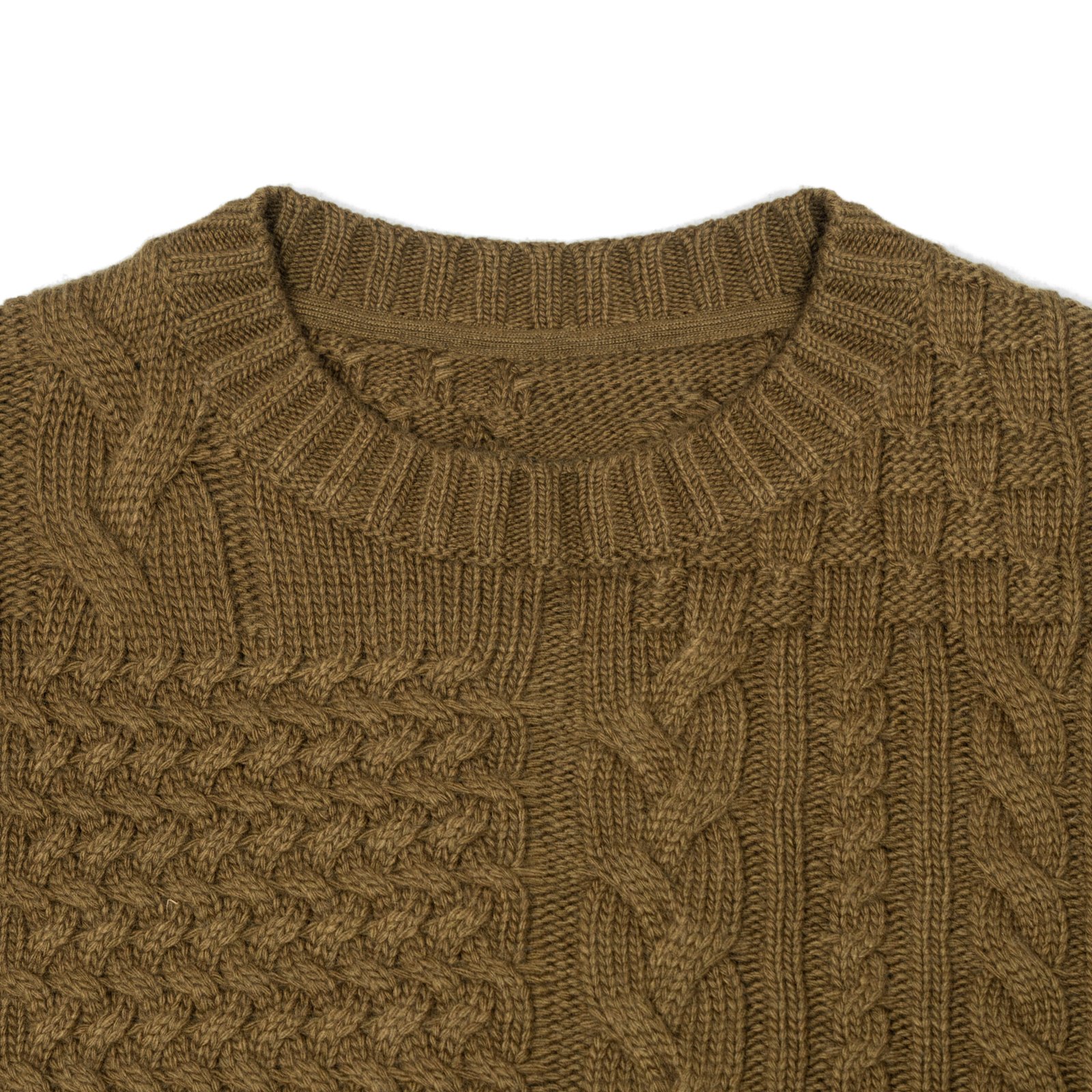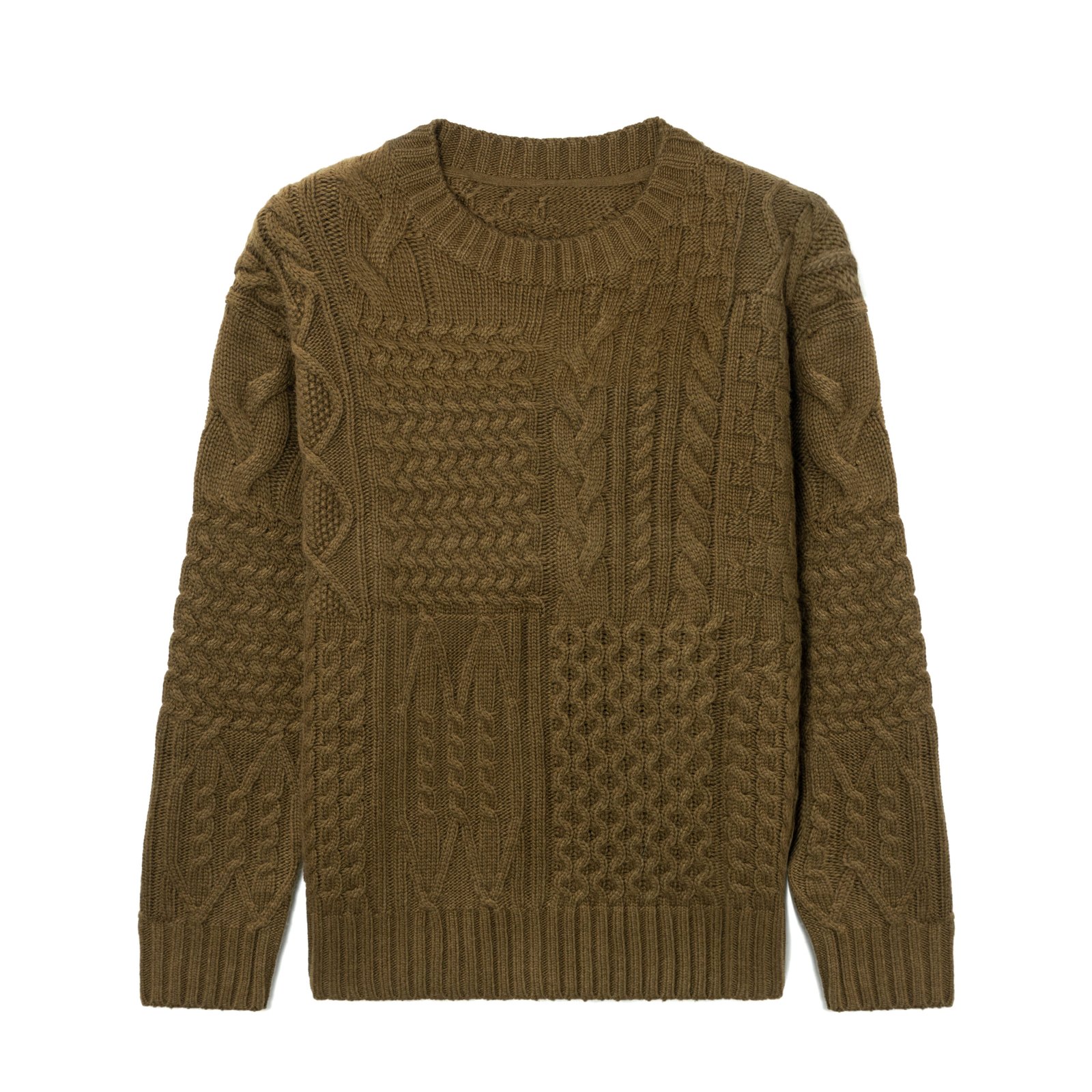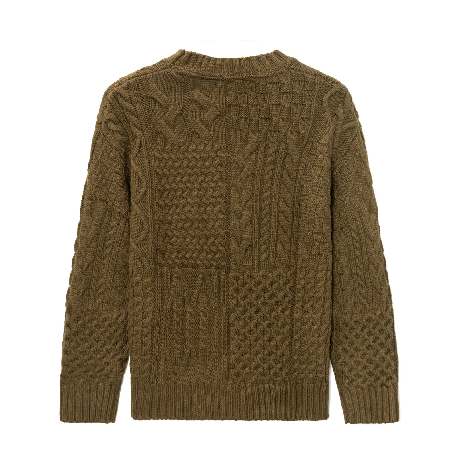 Men’s Patchwork Cable Knit Sweater – Olive Green Nylon Blend