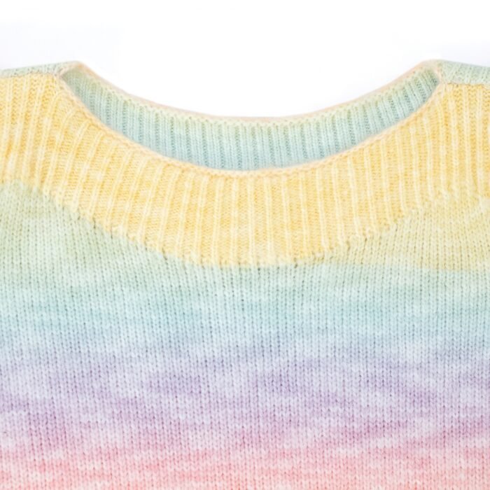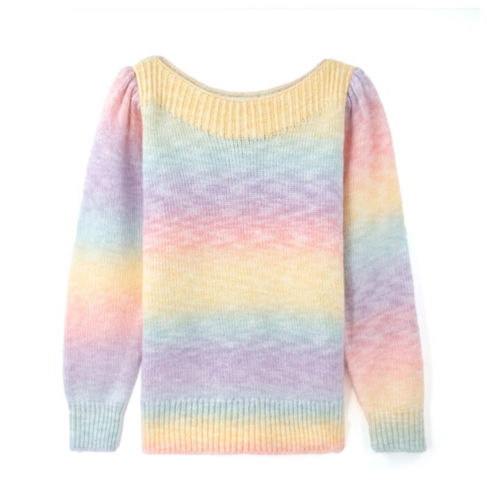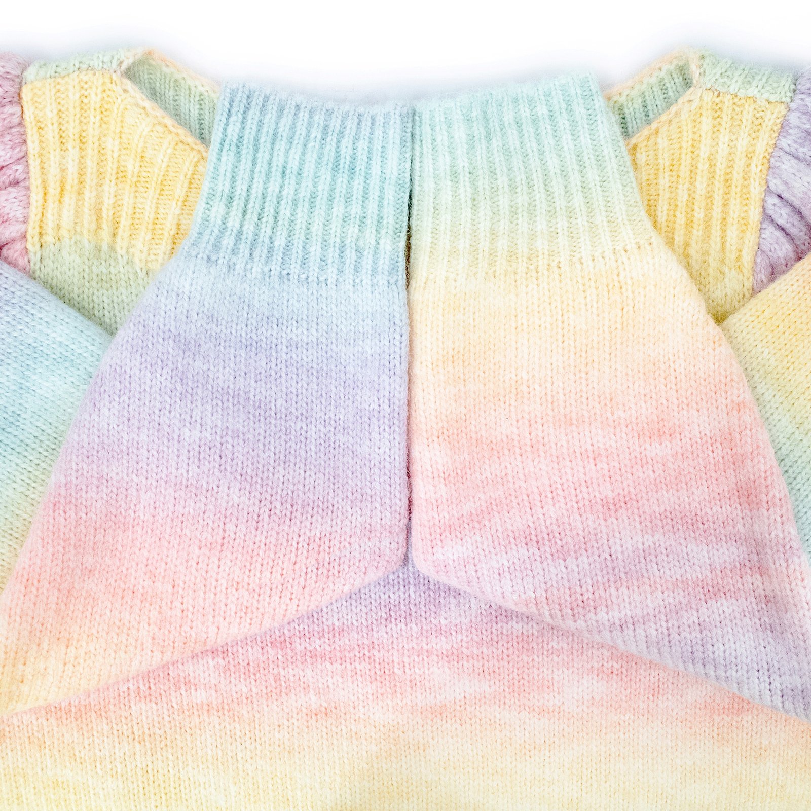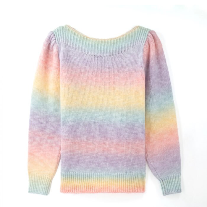 Pastel Rainbow Mohair Blend Sweater – Puff Sleeve Knit