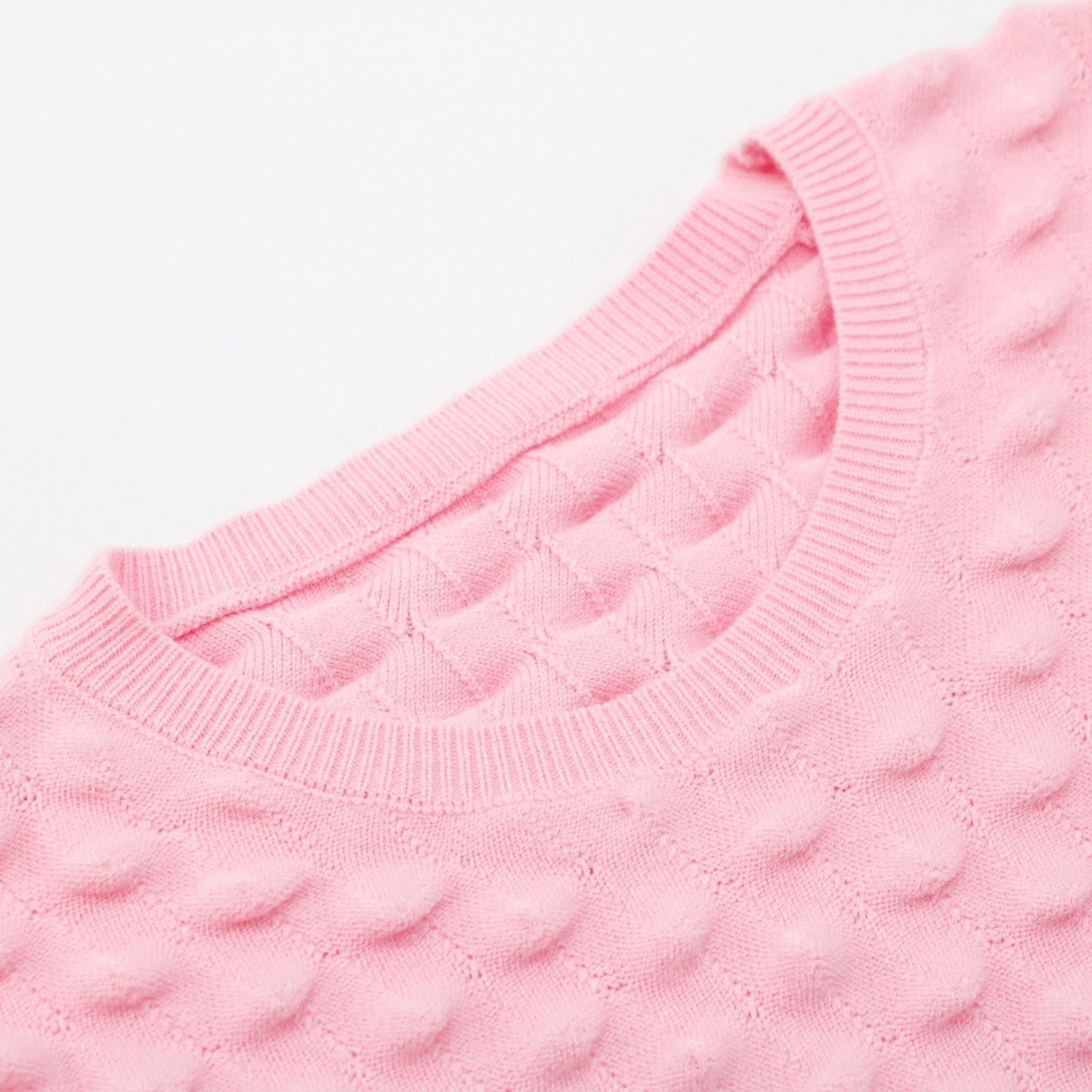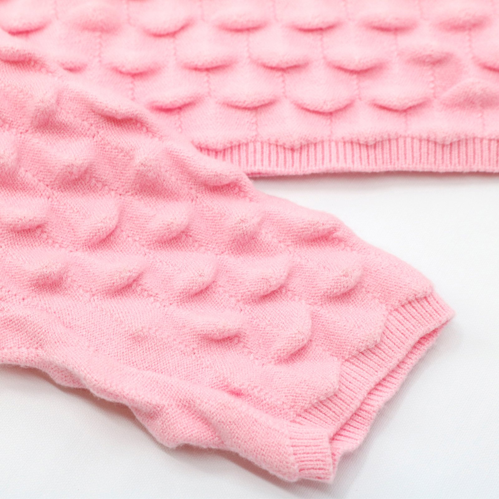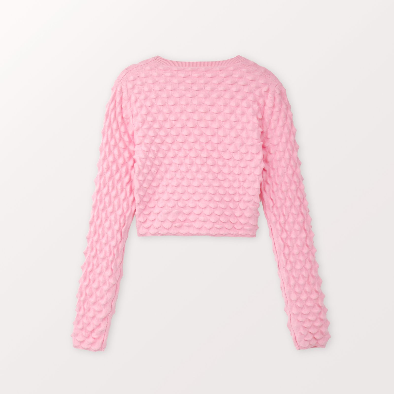 Pink Textured Popcorn Crop Top Long Sleeve T-Shirt