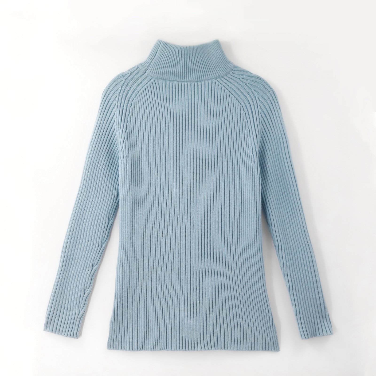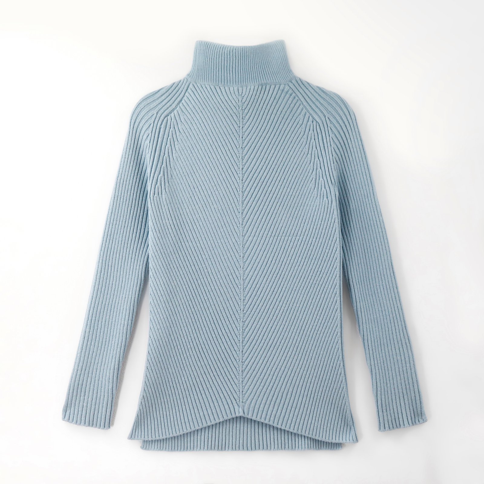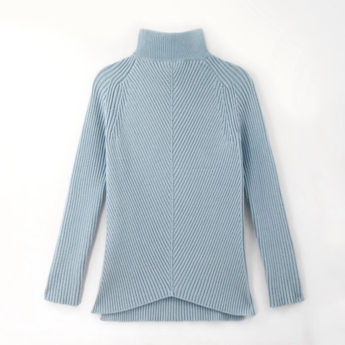 Sky Blue Ribbed Turtleneck Sweater – Chevron Knit Tunic