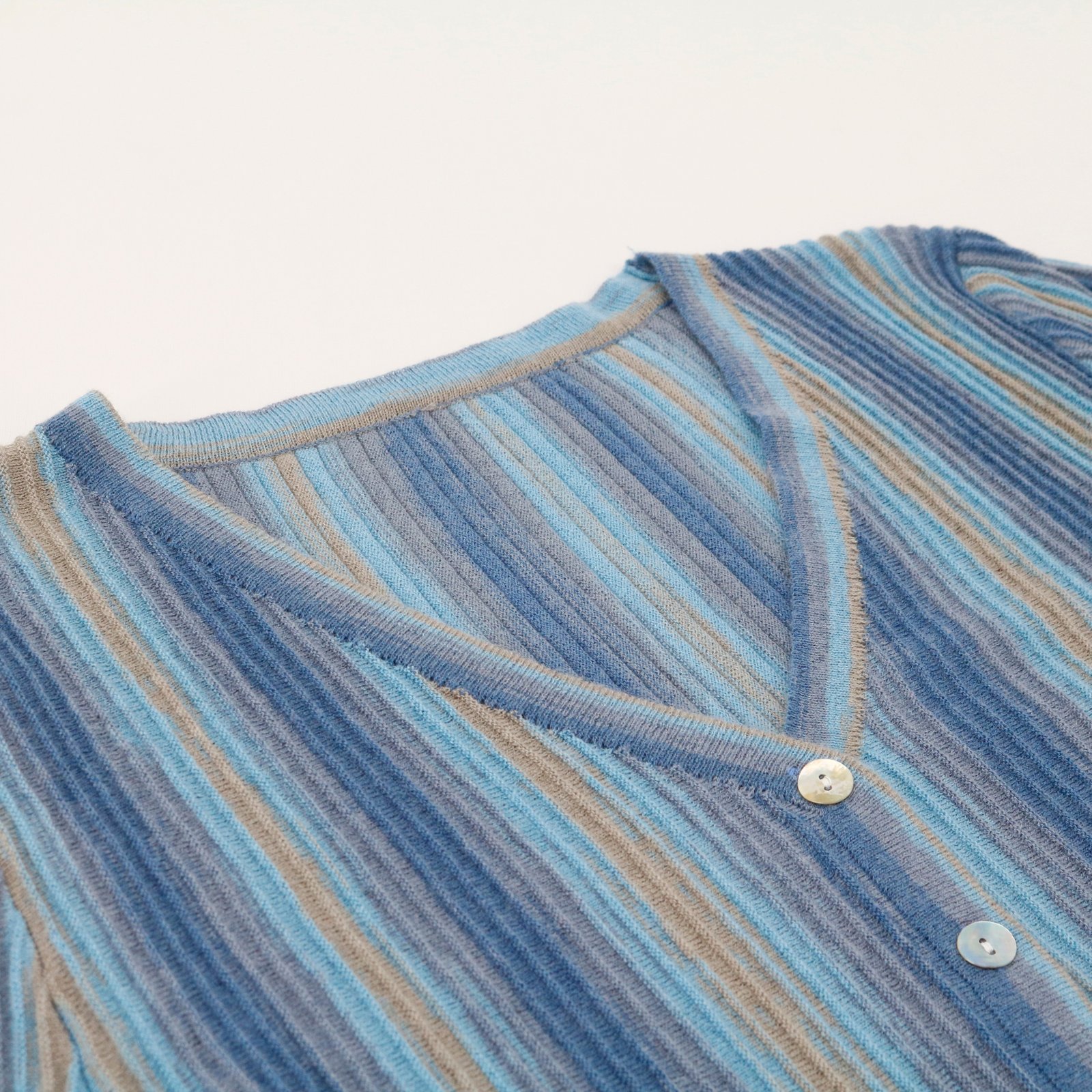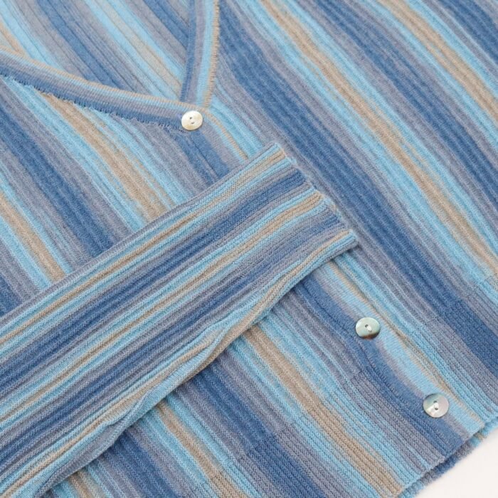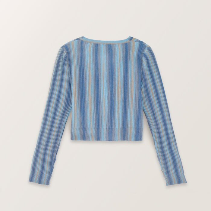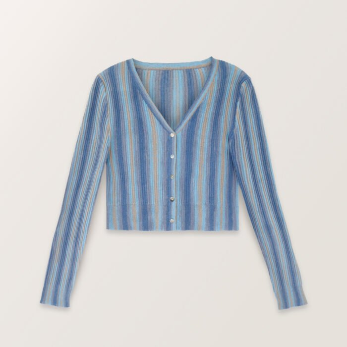 Vertical Stripe Ribbed Cardigan – Cropped V-Neck Women’s Top