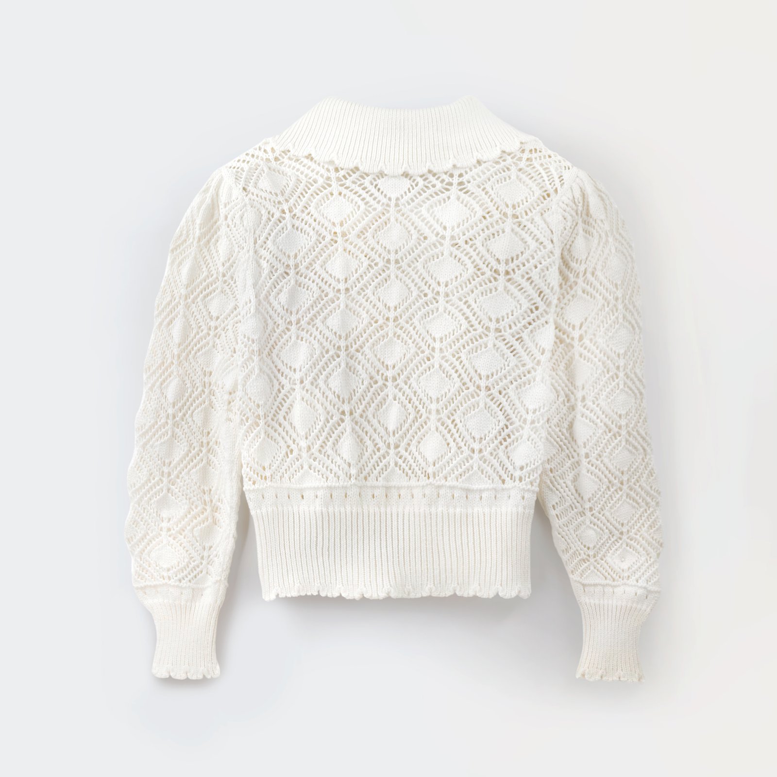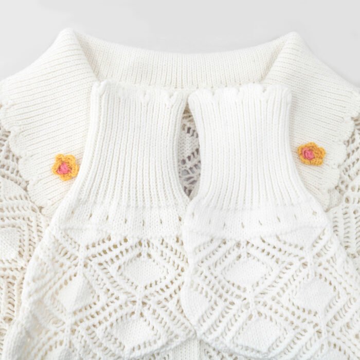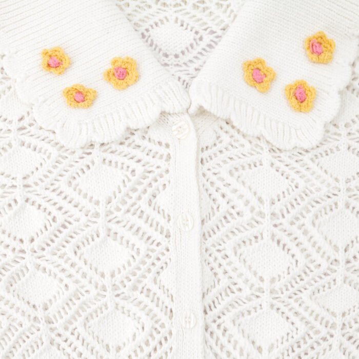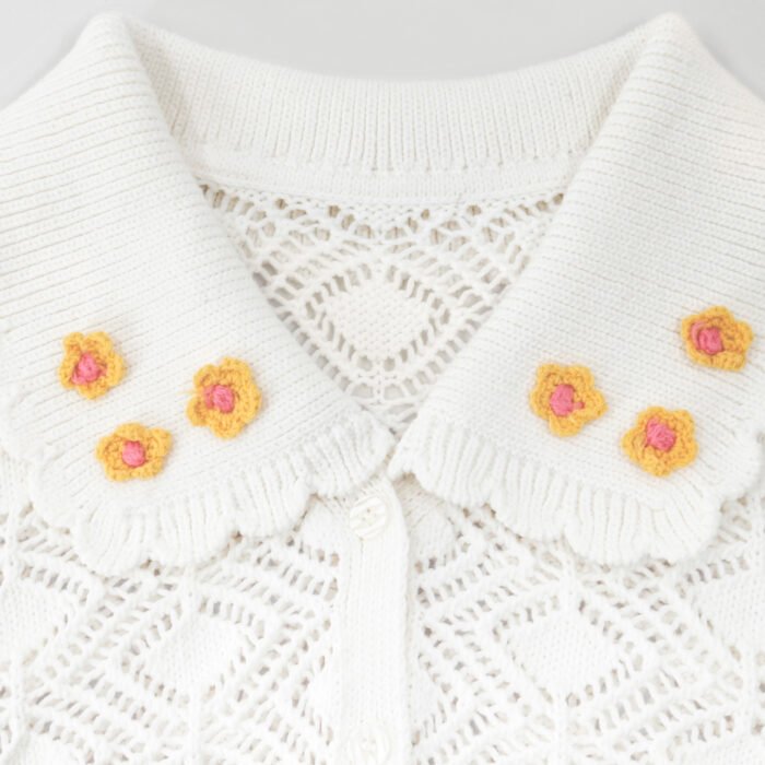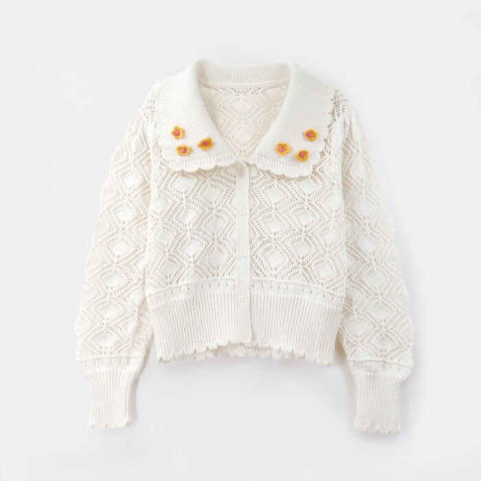 White Crochet Lace Peter Pan Collar Cardigan – Flower Detail