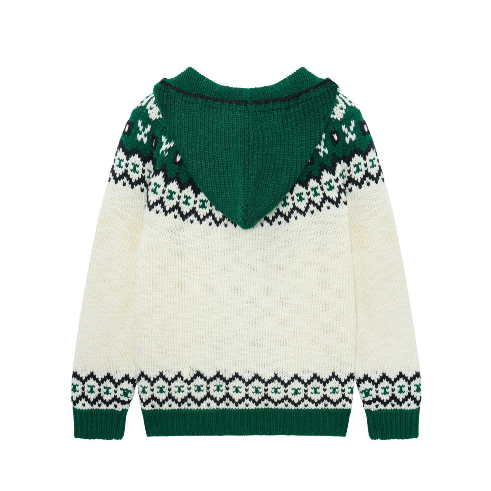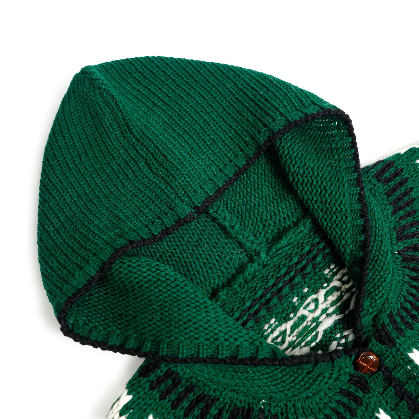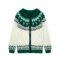 Women’s Fair Isle Yoke Cardigan – Green & White Button-Front Knitwear