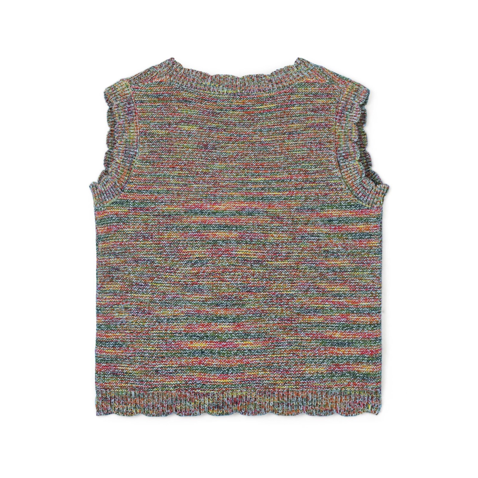 Women’s Multicolor Tweed Knit Vest – Scalloped V-Neck Cardigan