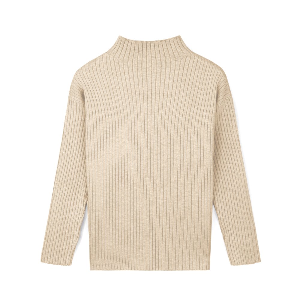 Women’s Rib Knit Mock Neck Sweater – Essential Beige Pullover